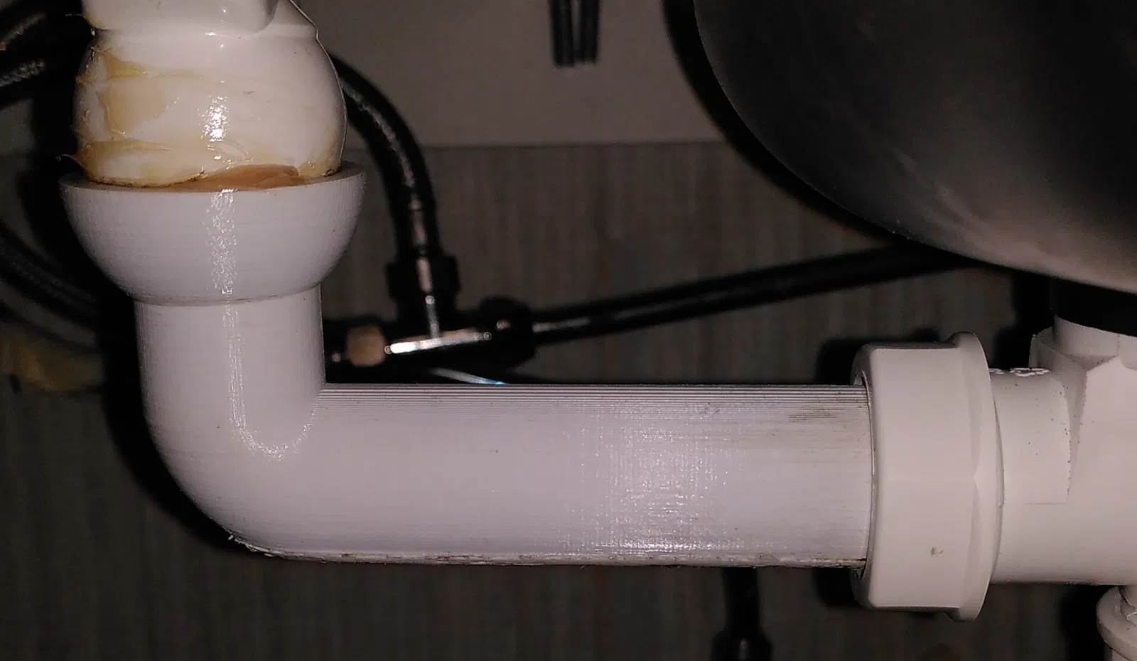 Mảnh hình chữ L mà tôi nhận được với bộ thoát nước bếp của mình quá ngắn để gắn vào ống thoát nước của khay nhỏ giọt. Vì vậy, tôi đã tự tạo mô hình của riêng mình :)