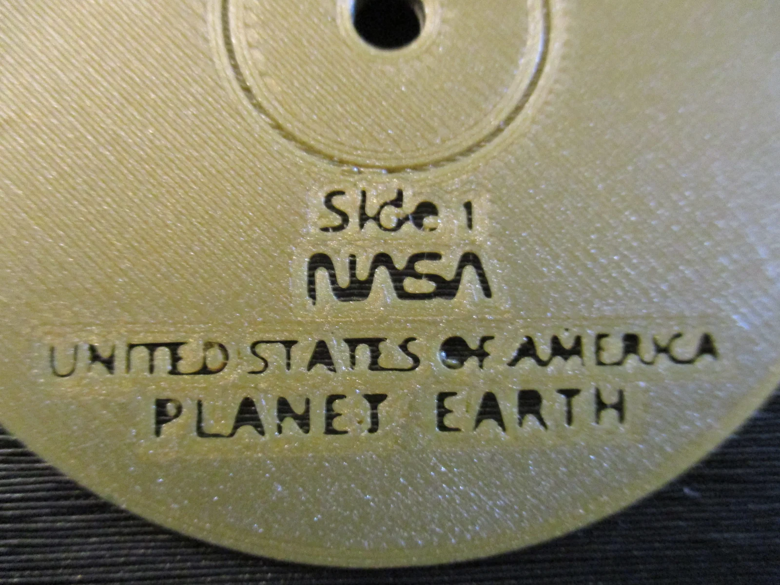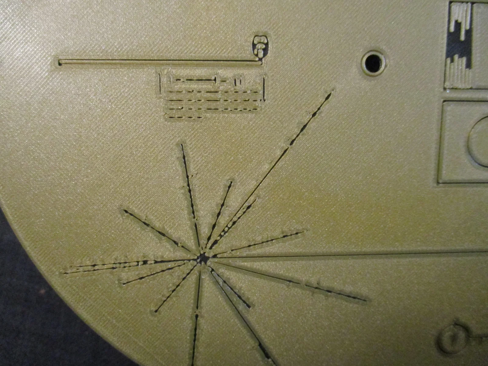 - Mặt dưới là bản tái tạo của Side 1 của Voyager Golden Record.