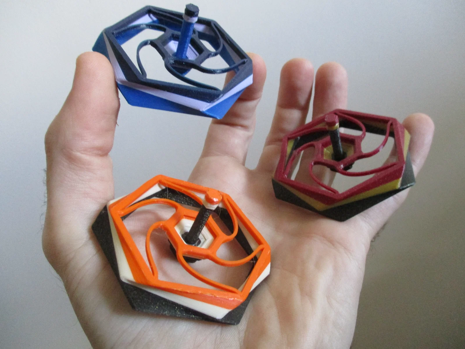 Bộ 2 con quay nhỏ dạng print_in_place, in nhanh và rất nhẹ nên phóng quay tốc độ cao. Không cần support/keo/ốc. Có trục lục giác 6 vị trí để tối ưu độ rung, kèm bản Reversed Top để phóng trên vật nhọn.