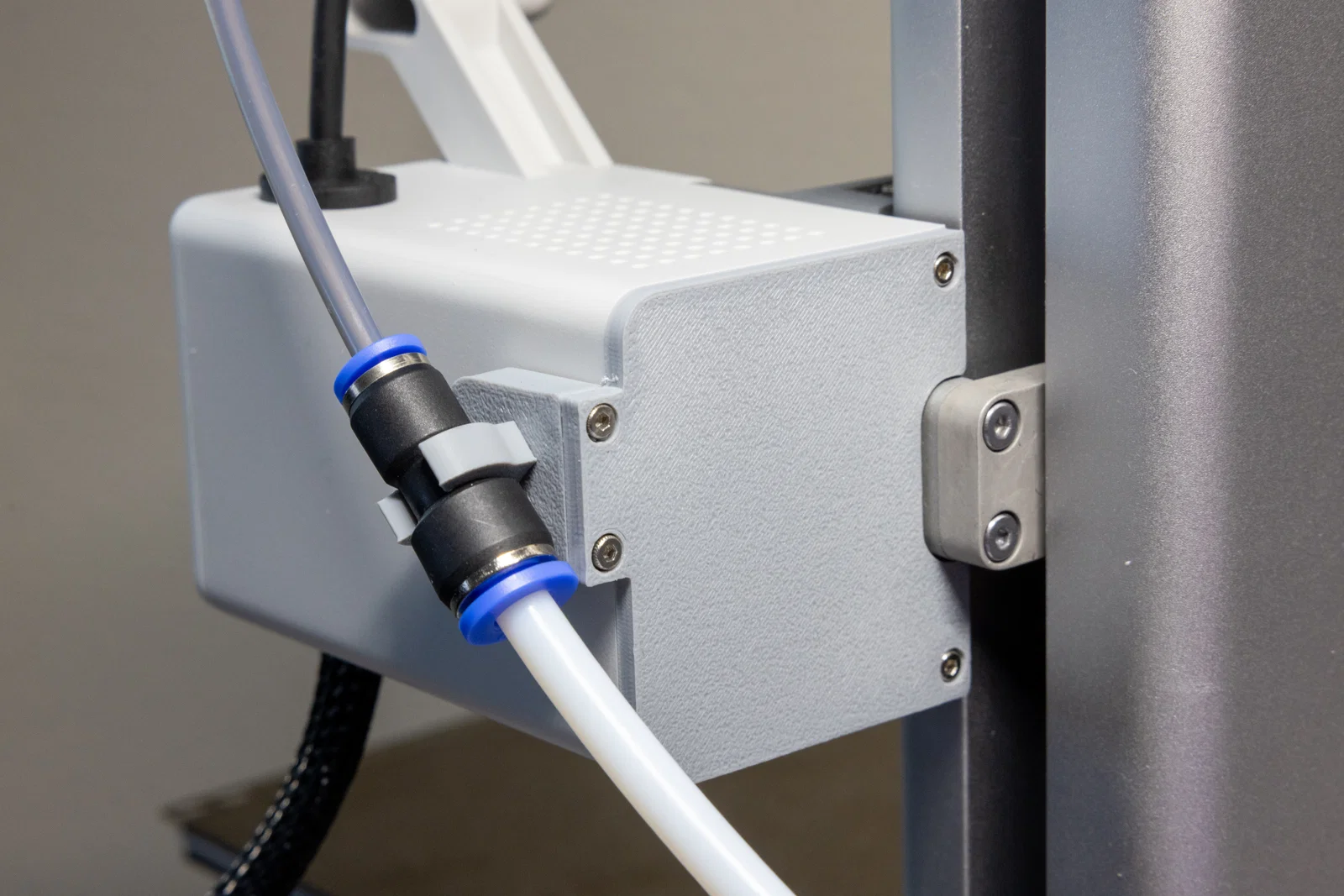 Bộ lắp ghép dạng modular này cho phép thay thế filament guide zin của A1 mini bằng các clip dùng cho adapter ống dẫn filament. Nhờ vậy, bạn có thể tạo một kết nối gọn gàng và kín hoàn toàn giữa hộp sấy filament và hotend của máy in.