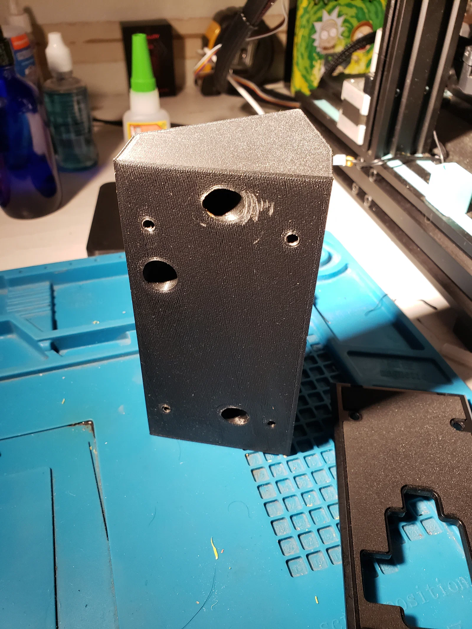 Mình in mẫu này với đầu phun 0.4 và layer height 0.2. Infill 15%, và mình để hướng các lỗ quay lên trên để khỏi cần support/không bị overhang. Mình mới tập thiết kế nên mong mọi người góp ý giúp mình.