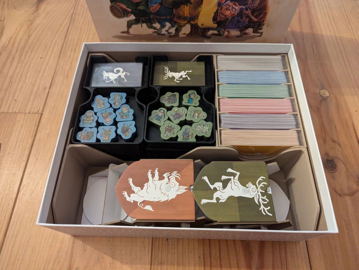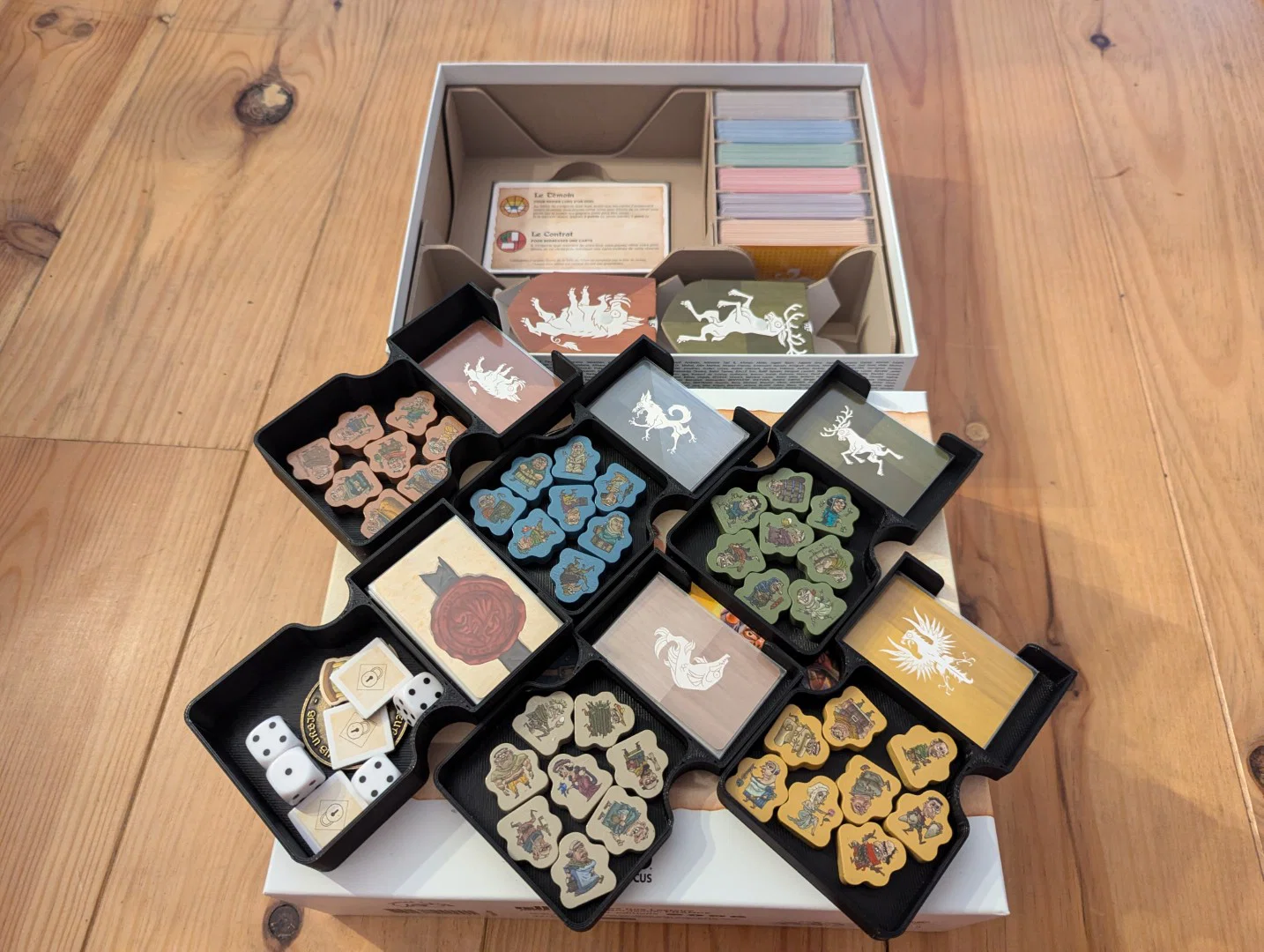 Insert cho Sbires bản new edition ALLIN, chứa vừa hộp base game và toàn bộ expansion. Có mẫu cut-and-glue cho giường nhỏ và mẫu lớn cho giường lớn; số lượng chi tiết cần in được ghi trên từng file. Tương thích sleeve tới 90 microns.