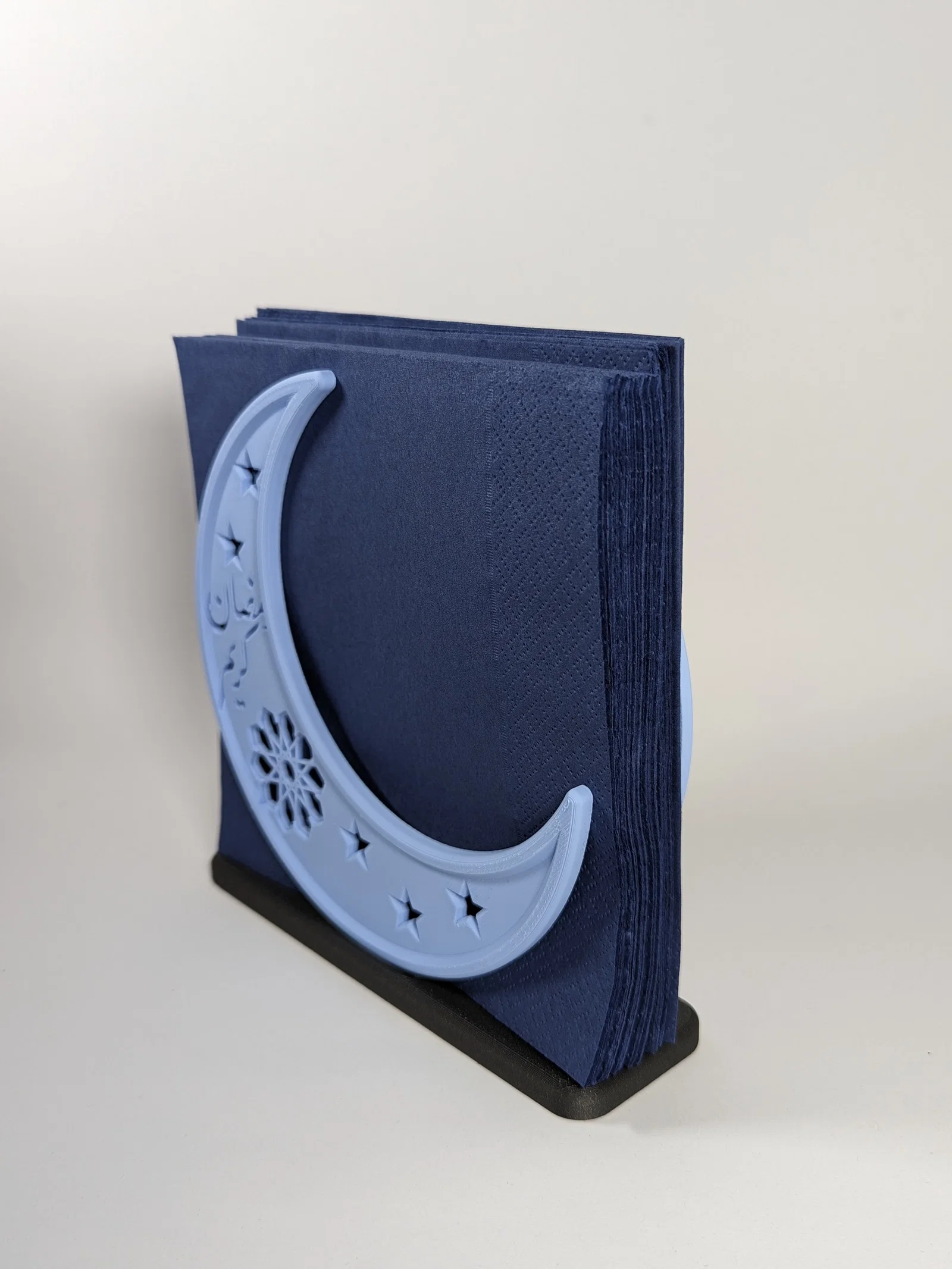 Mẫu giá đựng khăn ăn lấy cảm hứng từ Ramadan, phù hợp bày trên bàn Iftar. Gợi ý in: layer 0.3mm, infill 15% (hoặc cao hơn), không cần support hay brim.