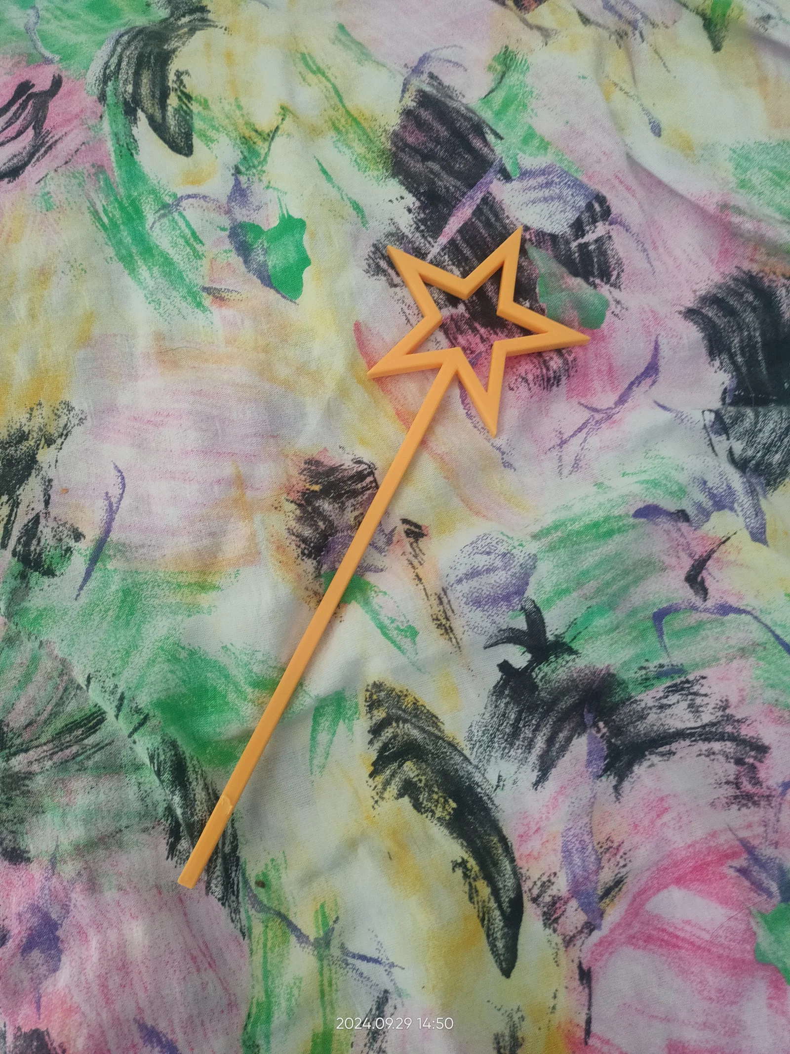 Mẫu đũa phép hình ngôi sao đơn giản, mình làm cho mấy bé dùng dịp Halloween hay tiệc hoá trang. In được trên bàn in 18×18 cm (Prusa mini, A1 mini). Gợi ý: nozzle 0,4; layer 0,2; ironing; infill 10% gyroid.