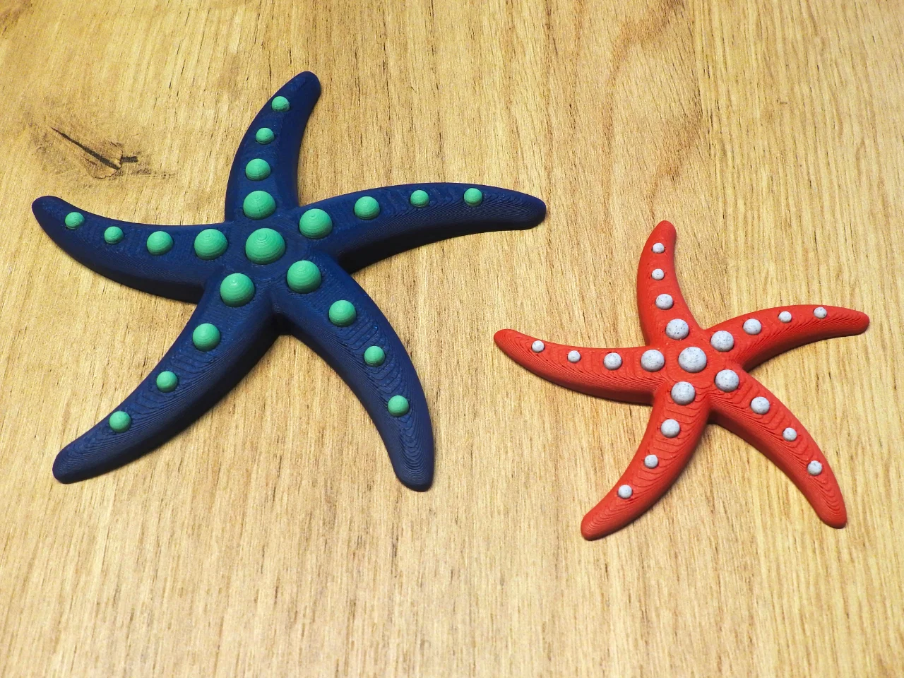 Mẫu sao biển in bằng single extruder nhưng ra 2 màu nhờ thiết kế 2 phần riêng biệt. Chỉ cần in và ráp lại là có mô hình hai tông màu, không cần support. Có 2 size: 12x12 cm và 8x8 cm.
