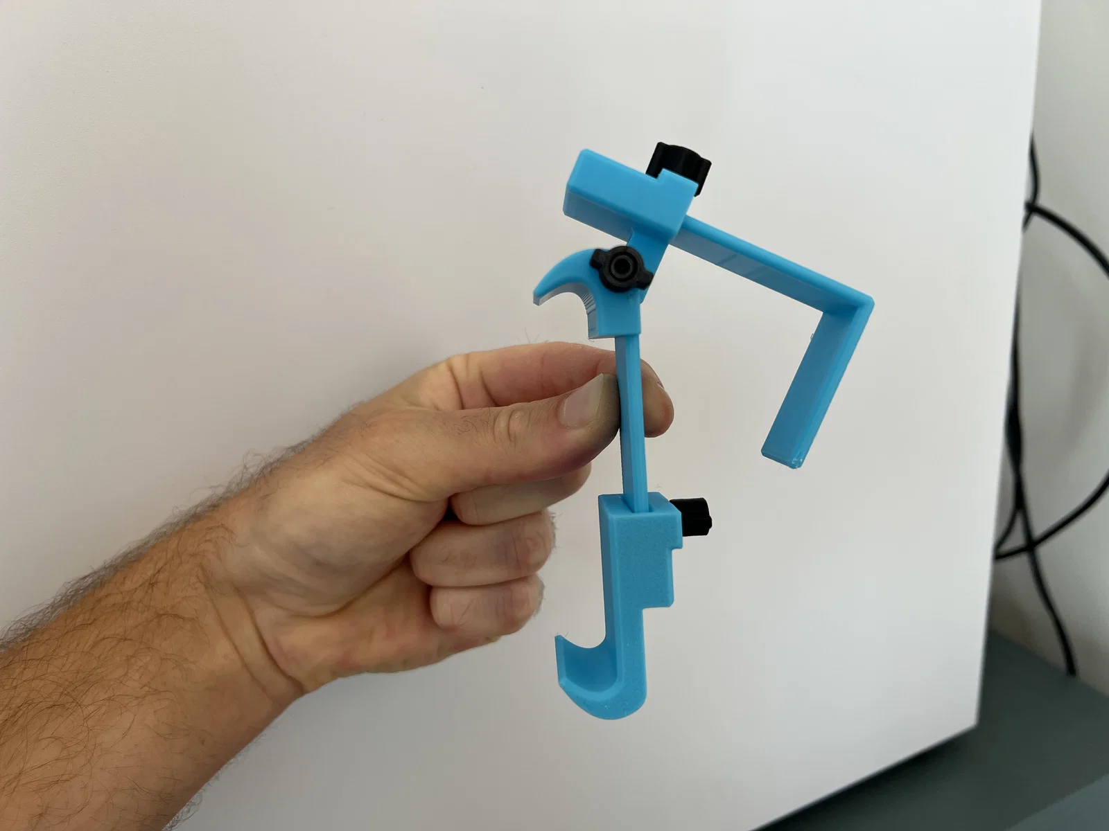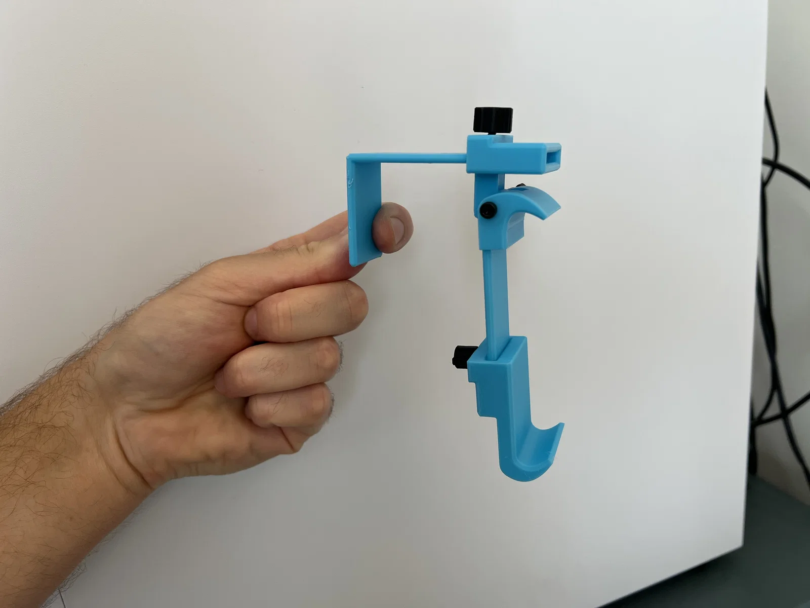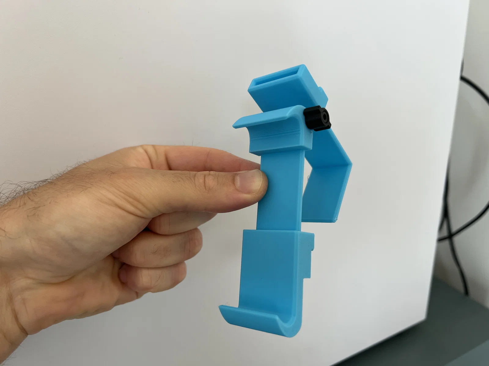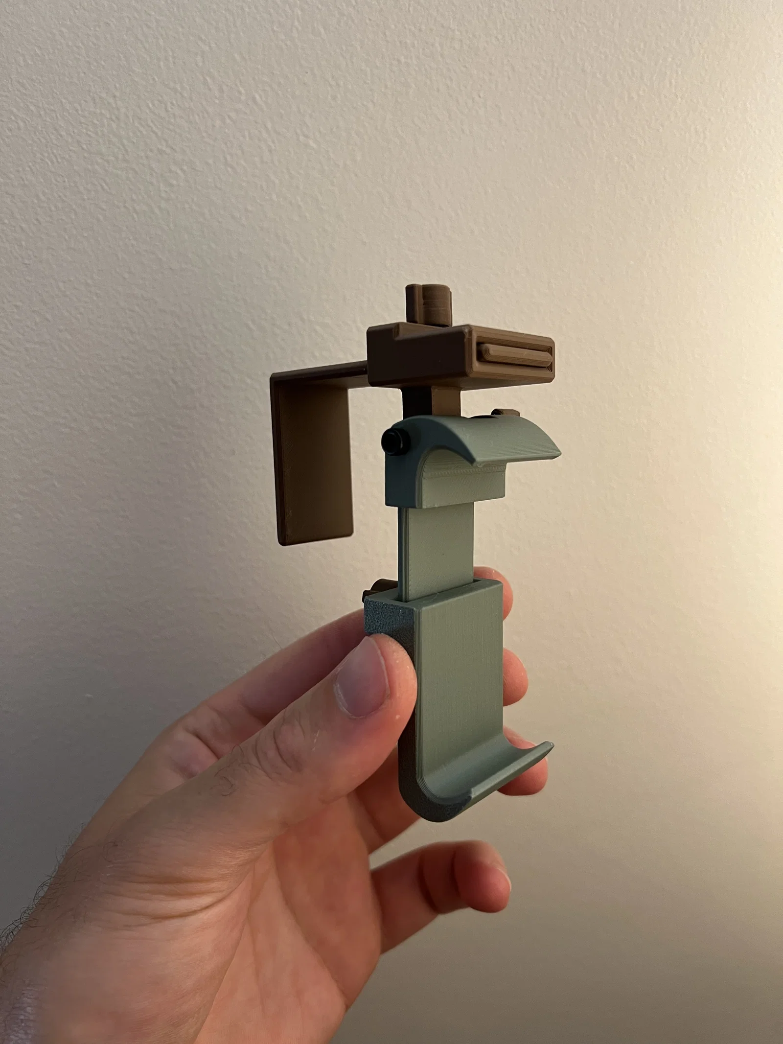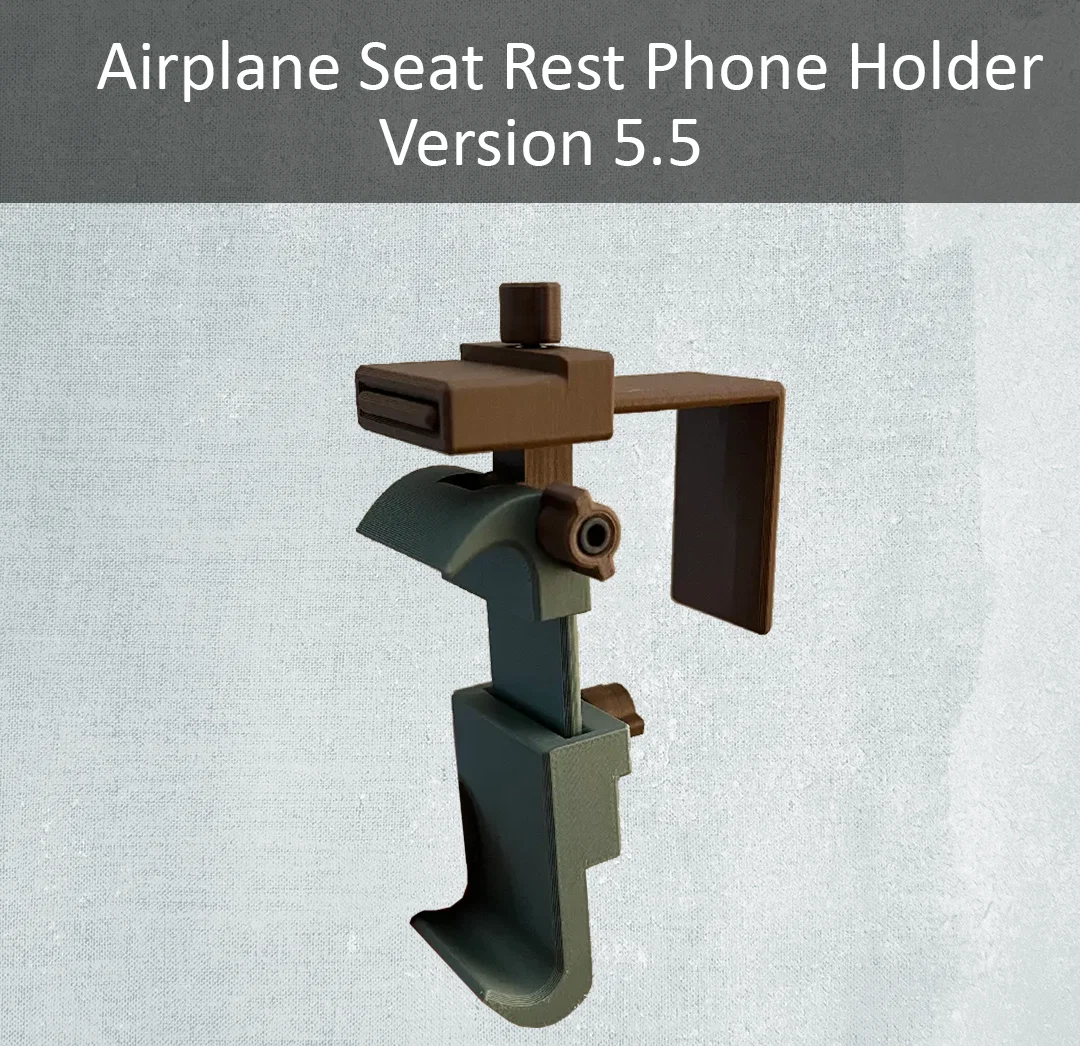 Mẫu giá đỡ điện thoại gắn bàn khay máy bay, in support-free. Phù hợp máy rộng tối đa 86.5mm. Cần vít M3 (12/16/20mm hoặc 35mm), tán M3 và M3 heat-set inserts để lắp ráp.