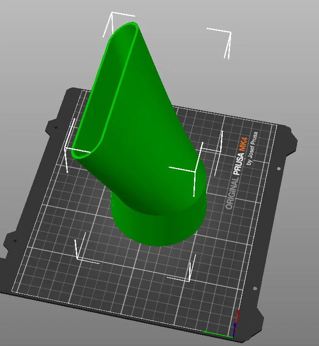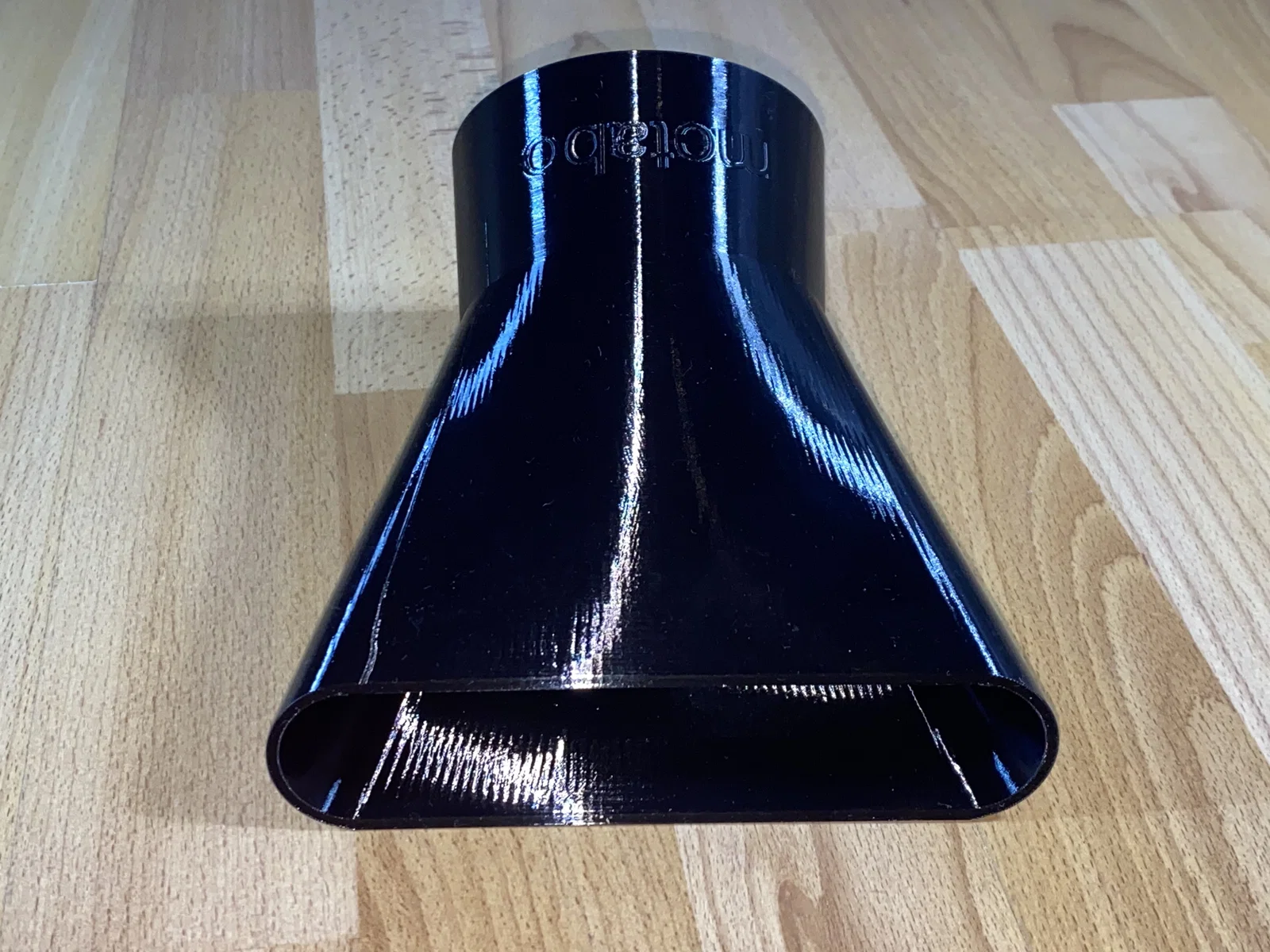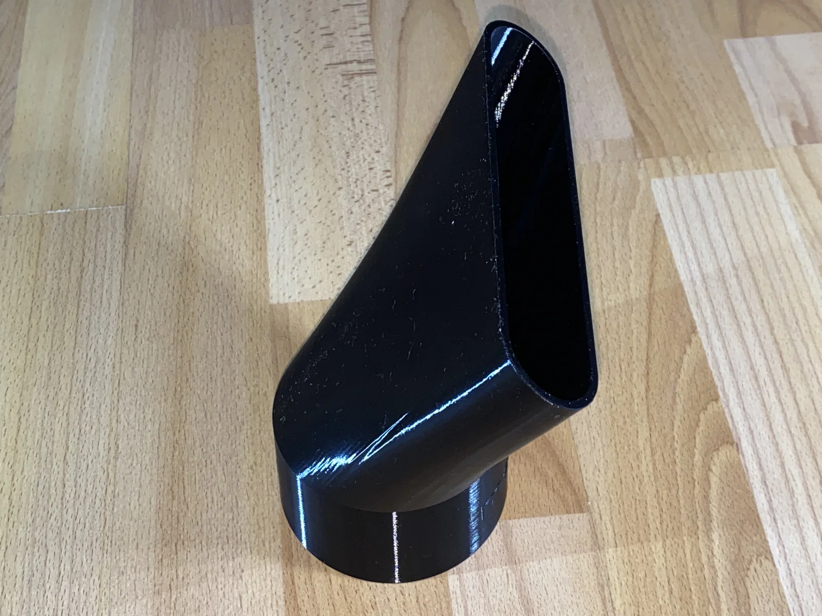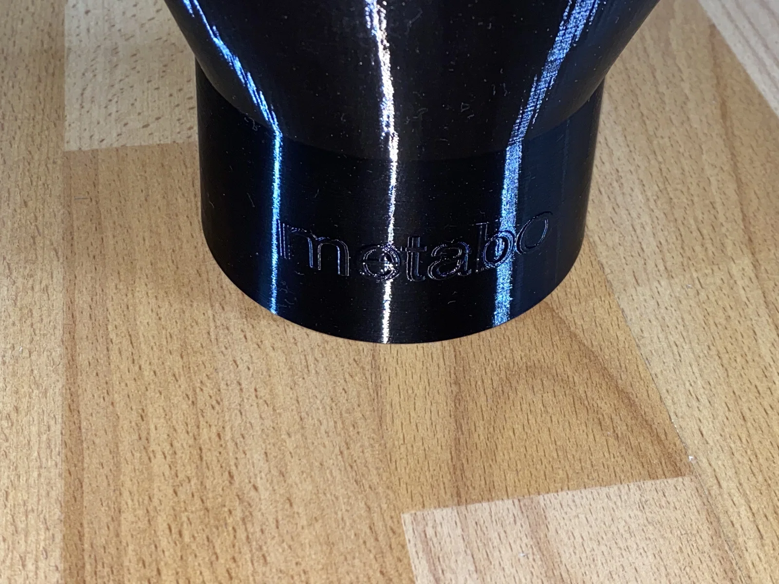 Đầu vòi dẹt (Flachdüse) dạng cong cho máy thổi lá Metabo LB18. Khi in, mẫu này chiếm phần lớn diện tích bàn in. Thiết lập gợi ý: Perimeter 6, Top/Bottom 6, không cần Support; dùng PETG (Flashforge Black).