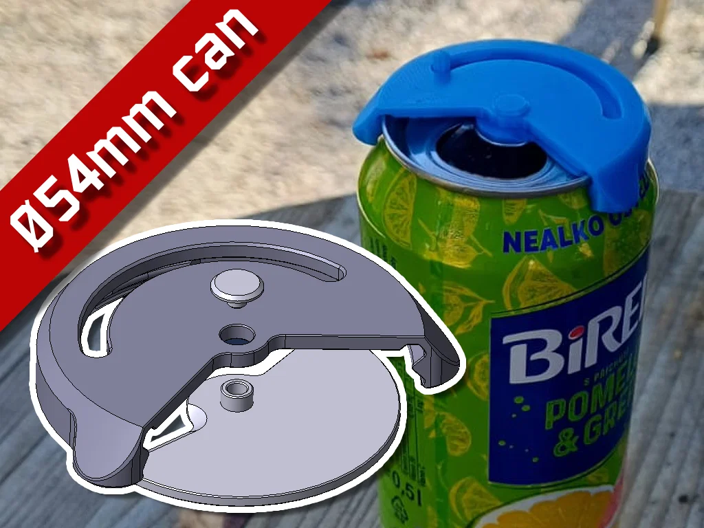 Bản remix nắp đậy cho lon đường kính Ø54mm (thường 330–500ml), chỉnh sửa từ mẫu của EcoDad. Dung sai cơ chế khóa ổn, kèm file STL và STEP. Khuyến nghị in PETG để dễ lắp/tháo hơn PLA.
