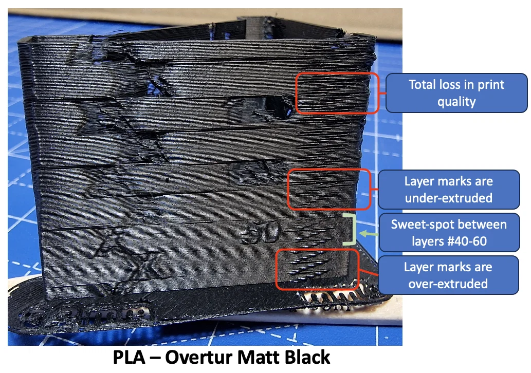 Bạn sẽ thấy giá trị quá nhỏ sẽ làm seam bị over-extruded, còn giá trị quá lớn sẽ tạo under-extrusions. Nhiệm vụ ở đây là chọn seam đẹp nhất, dù có thể không hoàn hảo.