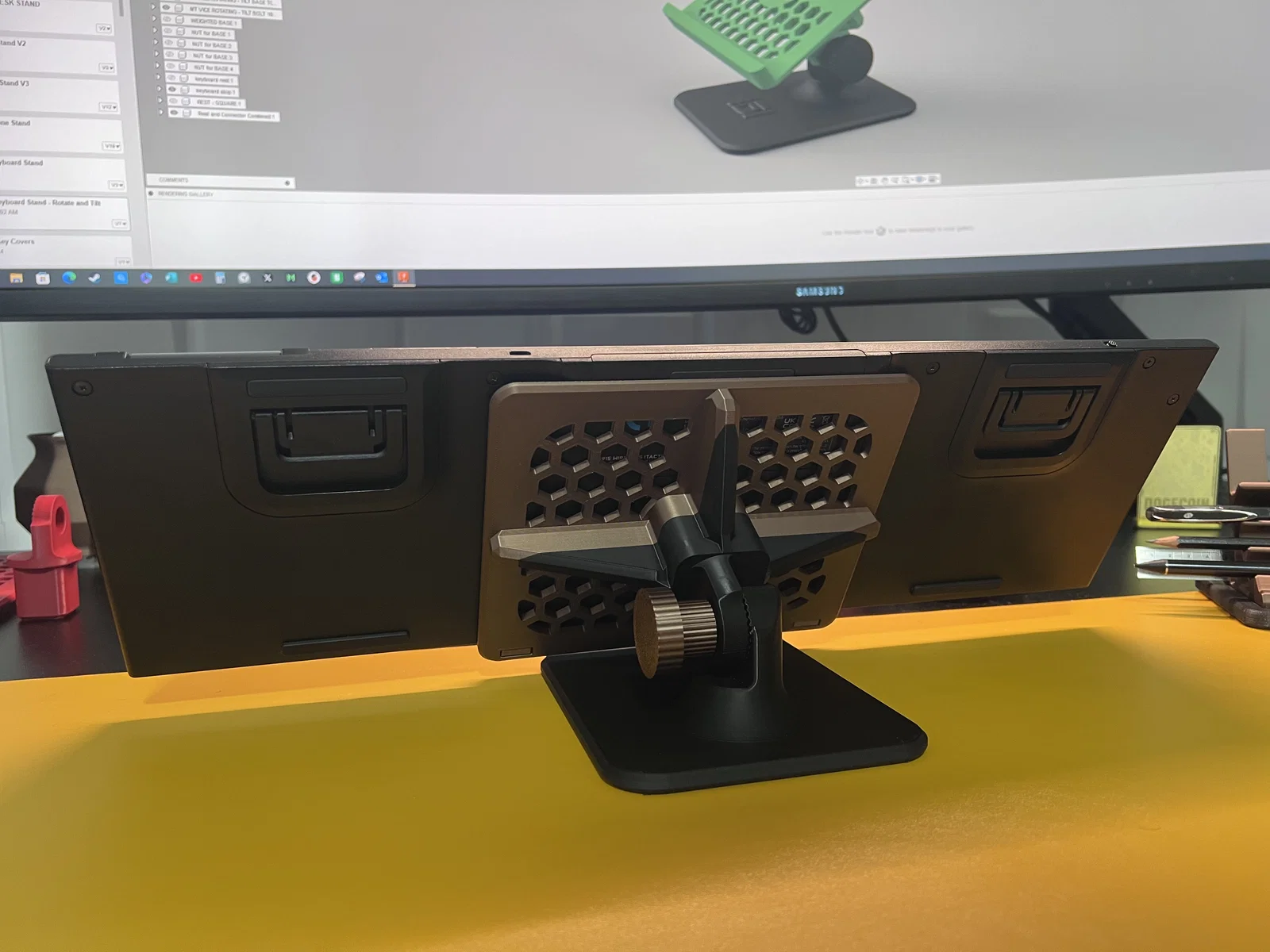Mình quyết định thiết kế một cái giá đỡ bàn phím, qua vài lần chỉnh sửa thì ra được phiên bản này.