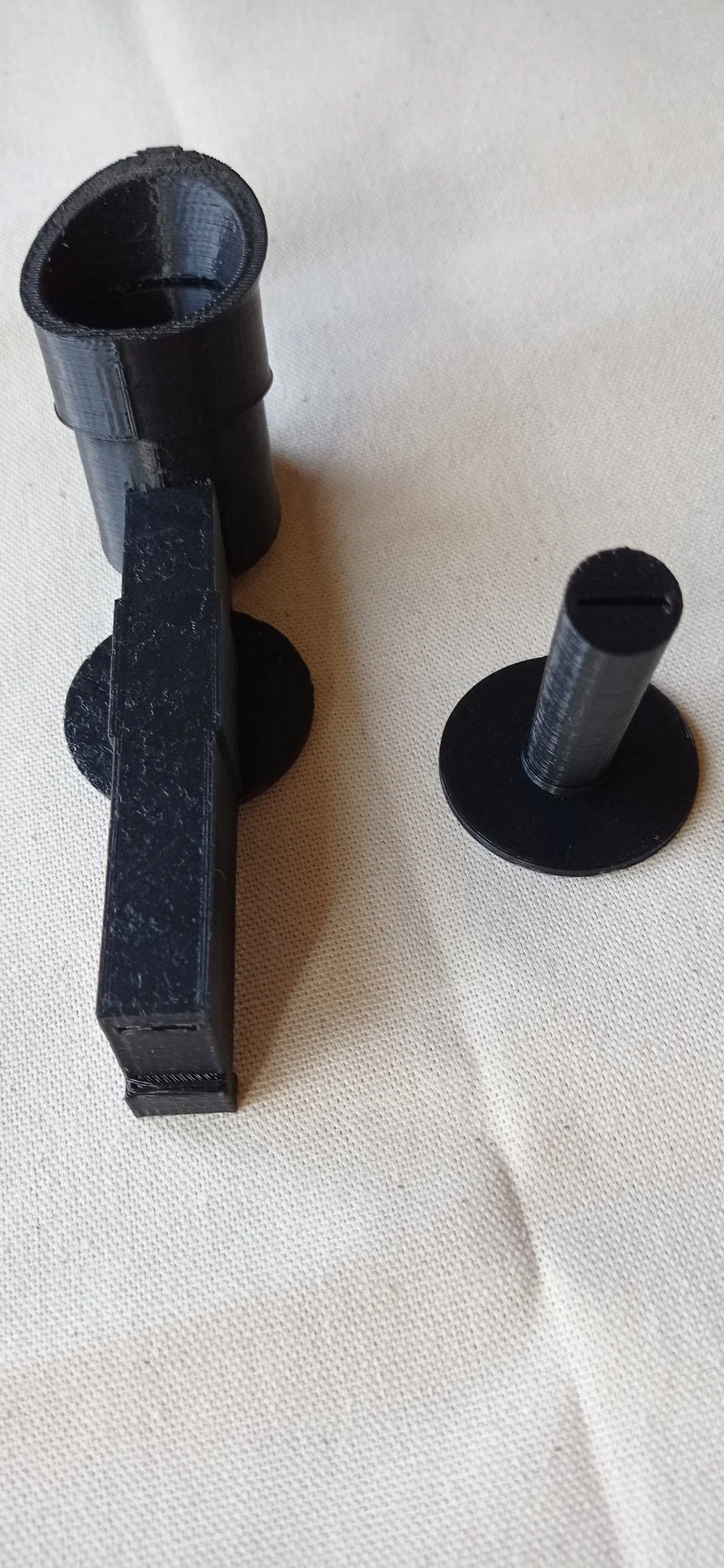 Đối với thiết bị cơ bản (nhìn gián tiếp), hãy in thân chính và đảm bảo rằng khe không chứa bất kỳ mảnh in nào. In tấm chắn trung tâm và ấn nó vào chỗ tiếp nhận nông trên thân chính, với đĩa định vị ở phía trên cùng. In ống mắt và làm sạch bất kỳ mảnh vụn nào. Sau đó, đẩy nó vào đầu thuôn của thân chính (hướng nên rõ ràng). Nó nên khớp vào vị trí. Cuối cùng, in và lắp cốc mắt lên trên, mà là một khớp chặt (có thể cần phải mài bớt).