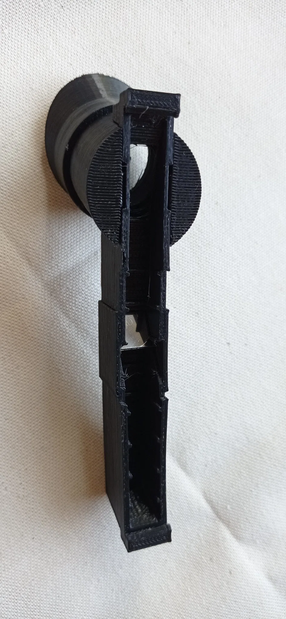 Thiết kế được hiển thị bao gồm bốn phần, tất cả đều được in bằng PLA đen với chiều cao lớp 0.2 mm và độ lấp đầy 20%: