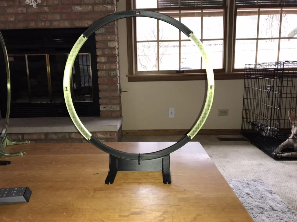 Mẫu cổng đua micro drone in được hoàn toàn, kích thước chuẩn để dựng track trong nhà. In 4 phần 1/4 vòng để ghép thành vòng tròn, gắn lên đế bằng dây rút nylon hoặc keo siêu dính.