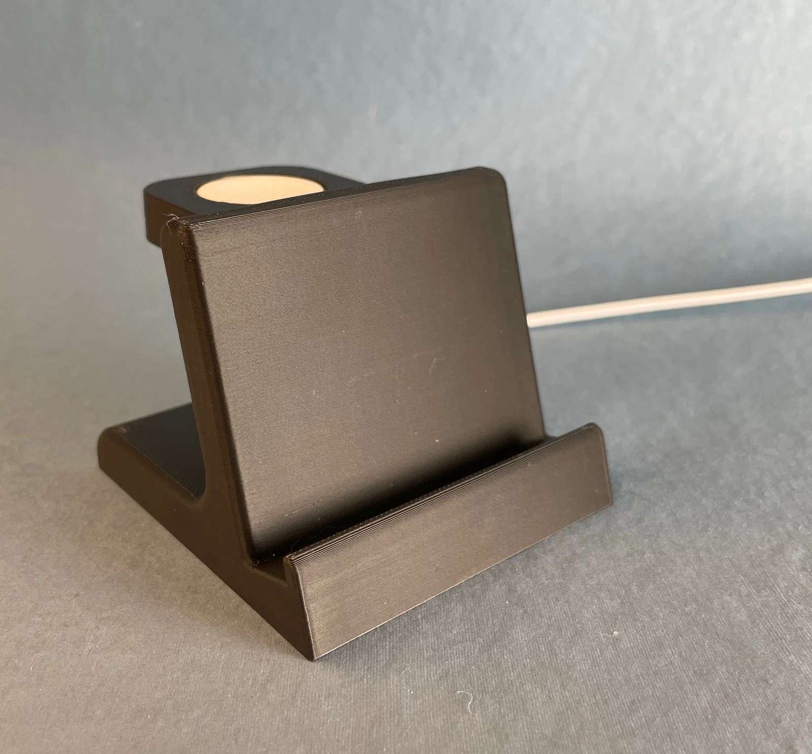 Được thiết kế để đặt được nhiều loại điện thoại khác nhau, cực kỳ lý tưởng để sử dụng tính năng Standby mode trên iPhone khi để trên bàn đầu giường. Lưu ý là đế này không hỗ trợ sạc không dây. Phần đế giữ đồng hồ ở phía sau được thiết kế để lắp vừa khít với đế sạc Apple Watch (charging puck). Đây là mô hình gồm hai phần, có thể lắp khớp vào nhau dễ dàng mà không cần dùng keo. Mình có đính kèm file STEP để mọi người thuận tiện chỉnh sửa (remix), chúc các bạn in ấn vui vẻ nhé.