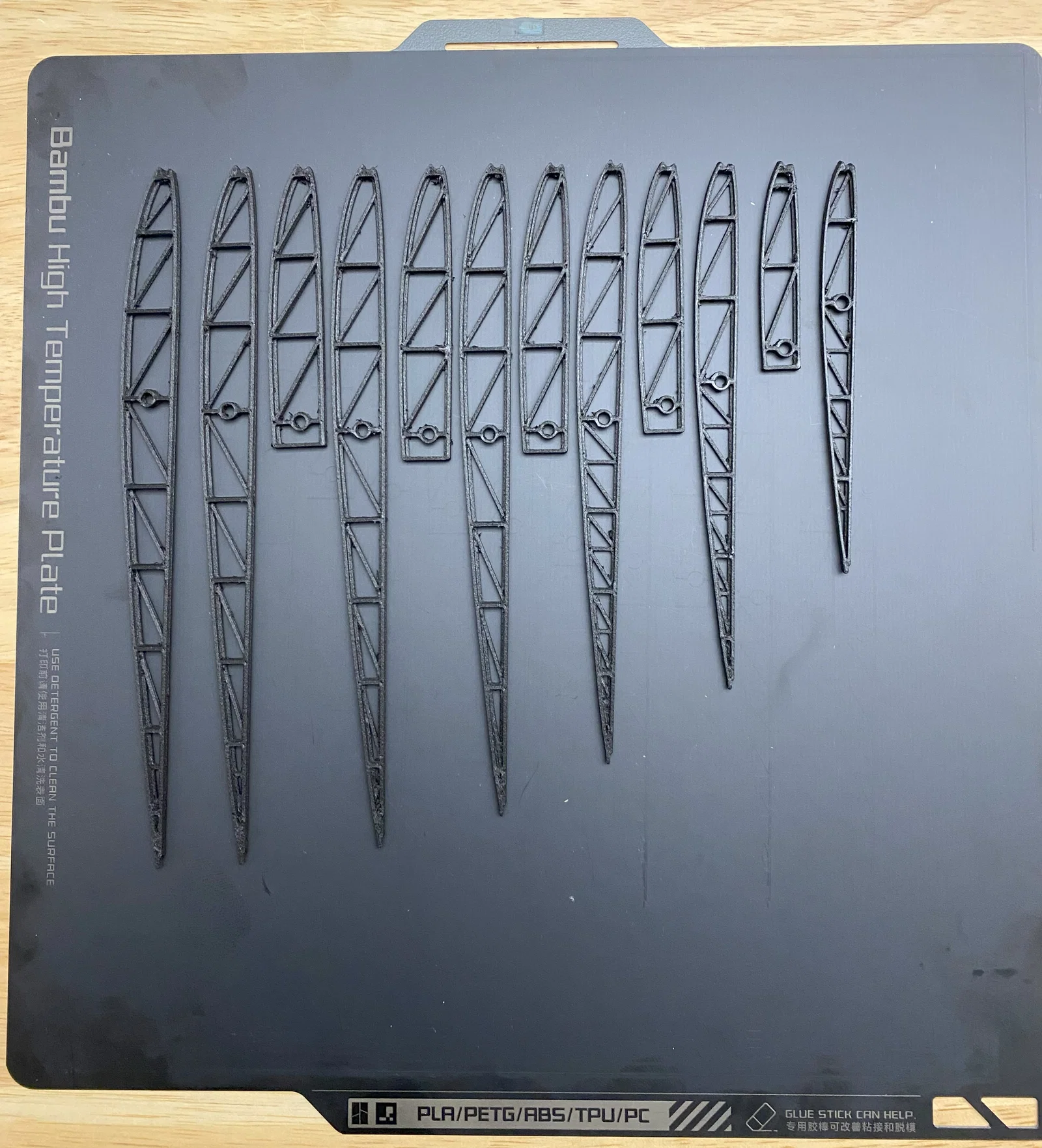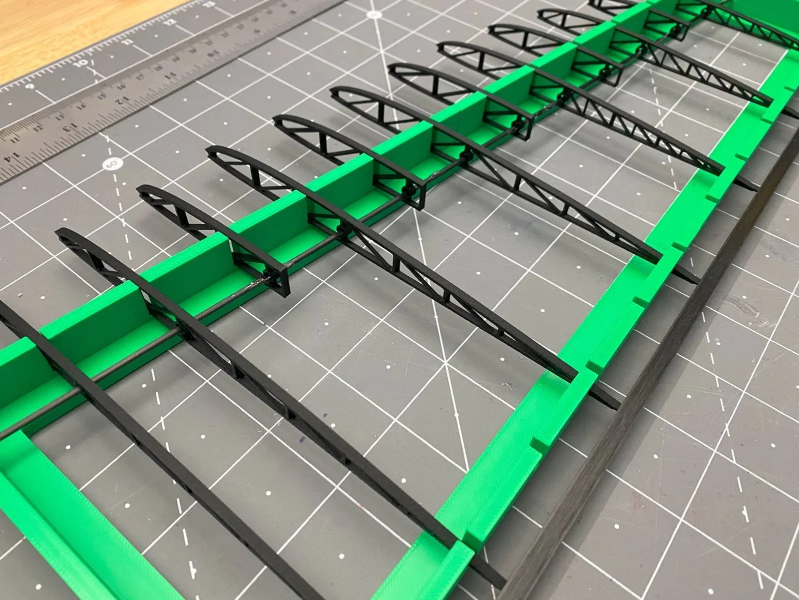 Mẫu “Carbon Bug” DLG in 3D bằng Carbon Nylon PA-CF, tối ưu tỉ lệ strength/weight và chịu nhiệt tốt. Bản này có đuôi skeleton mới, fuselage/wing root tích hợp và wing jig được tinh chỉnh.
