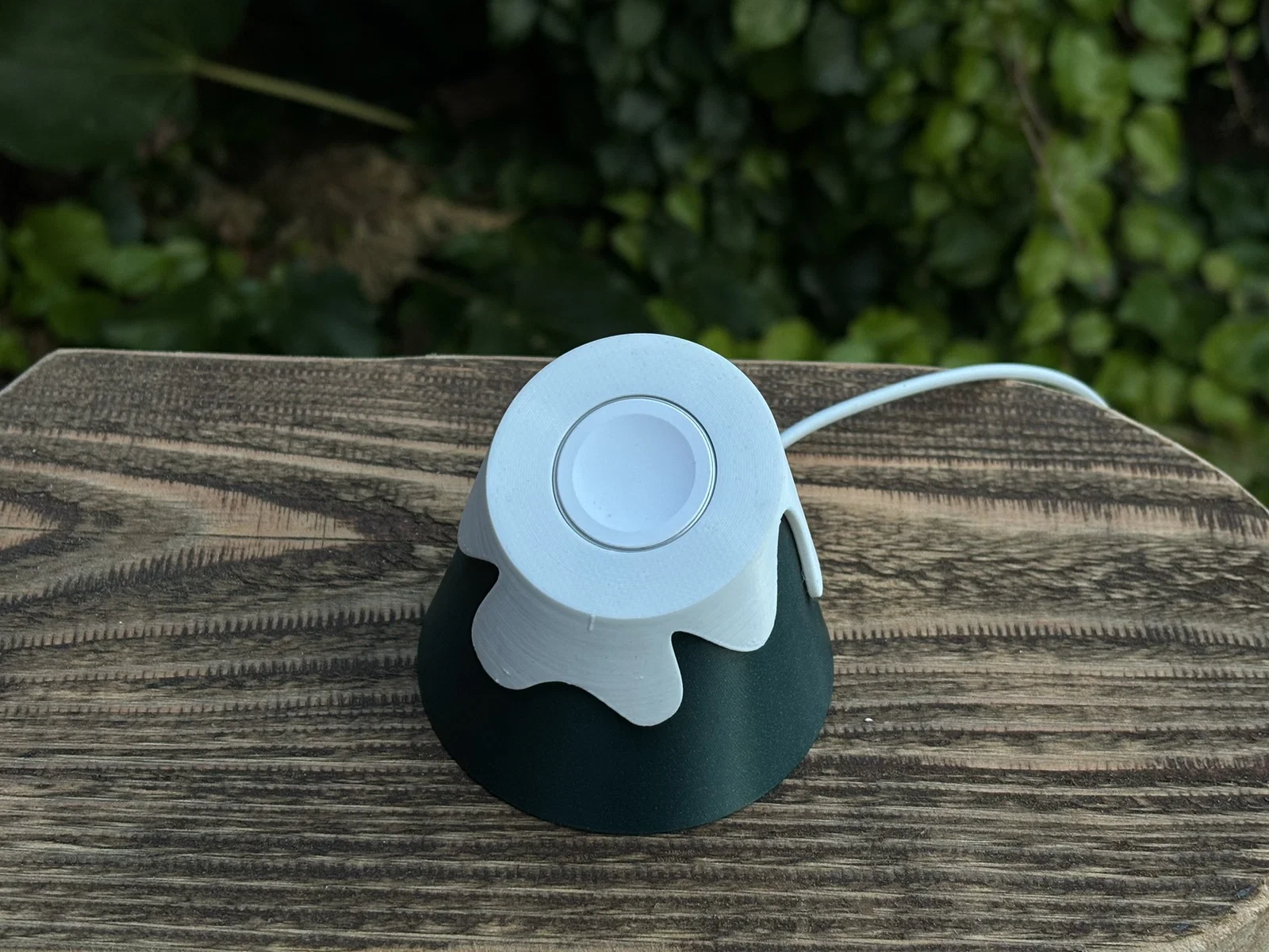 Mẫu đế sạc Apple Watch dạng núi tuyết, dùng cho dây sạc Apple Watch cổng USB‑C (tác giả dùng dây Series 7). Thiết kế lắp ráp bấm khớp, in không cần supports, lỗ trên vừa charging pod Ø28 mm.