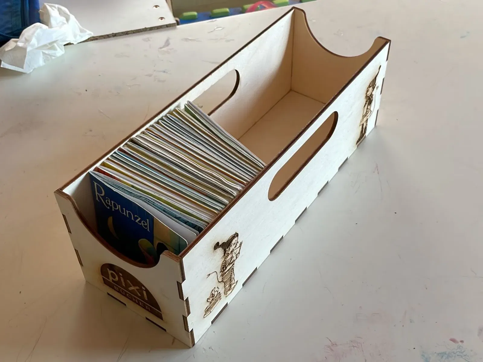 Một chiếc hộp nhỏ cho những cuốn sách trẻ em nổi tiếng. Chúng có kích thước 10*10cm và rất phù hợp cho một câu chuyện trước khi đi ngủ. Tôi đã tạo ra cái này cho một người bạn của tôi. Nếu bạn muốn, hãy xem các thiết kế khác của tôi cũng nhé!