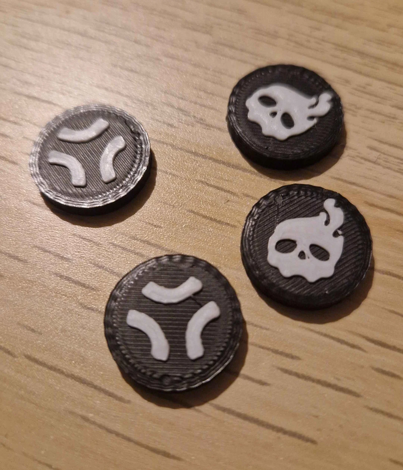 Bộ counter thông dụng cho Magic The Gathering gồm Goad, Finality và Suspect, thiết kế dựa trên mẫu của TonyYoungblood. Khuyến nghị in layer height 0.2mm (icon/keyword 1mm) và dùng Ironing để mặt trên mịn.