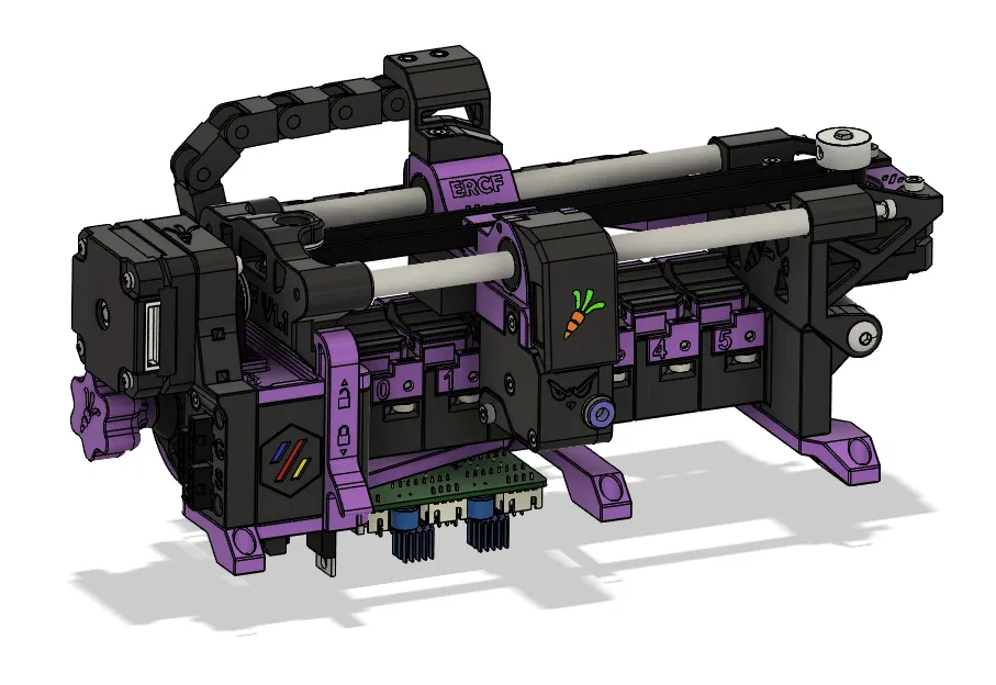 Mô hình này cho phép bạn gắn bộ EasyBrd vào bên dưới thân ERCF, giữ nguyên kiểu lỗ gắn ban đầu. Lưu ý cẩn thận với các tản nhiệt khi ERCF chưa được gắn.