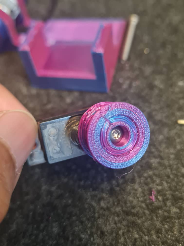 Một cái pulley tự thiết kế cho dự án finger-servo của mình! Đây là bản chỉnh sửa của pulley GT2 6mm, 20 răng, được làm để vừa khít với servo MG90S. Mình in bằng PLA với đầu phun tiêu chuẩn 0.4mm và layer height 0.2mm, kèm tốc độ in chậm hơn một chút. Pulley ôm sát trục servo và bám chắc tại chỗ ngay cả khi không dùng vít. Nếu muốn cố định hoàn toàn, chỉ cần dùng vít M2.5 dài 6mm.