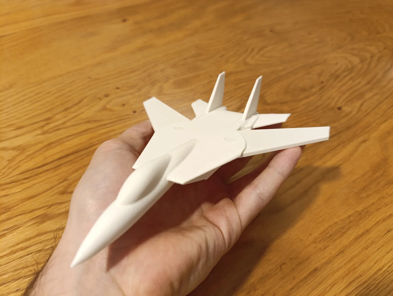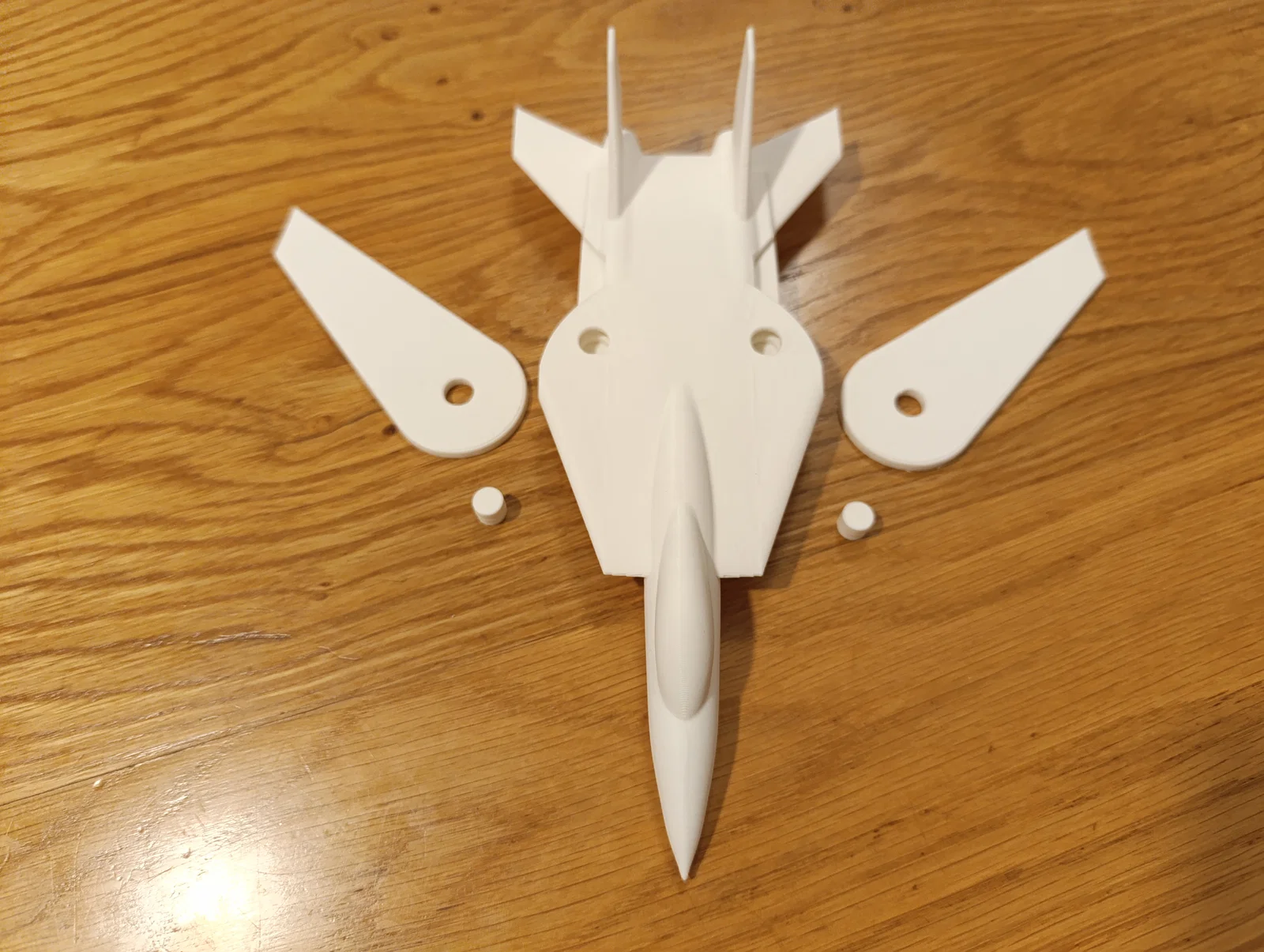Mô hình F-14 Tomcat với cánh swept có thể thay đổi góc, giúp tối ưu bay tốc độ thấp và cao. Kích thước khoảng 200mm từ mũi tới đuôi, lắp cánh vào thân và đẩy chốt vào lỗ là xong.