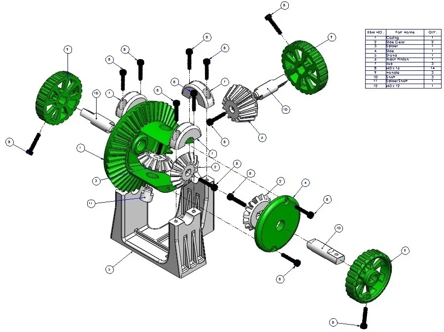 Cập nhật: file Differential2.zip có kèm các file nguồn SolidWorks và một file DXF của bản in.