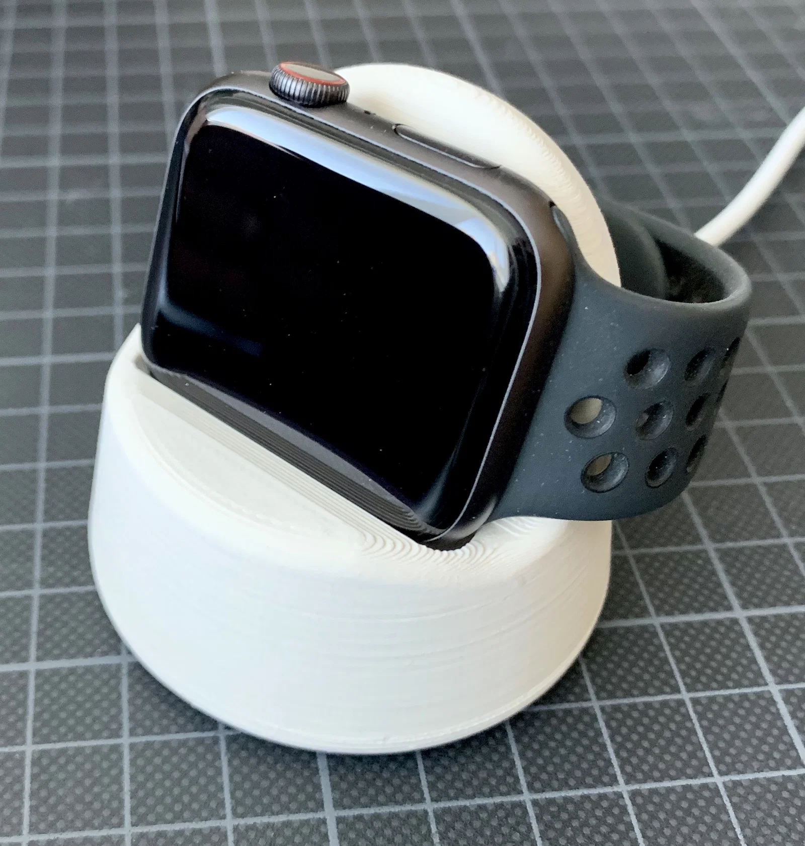 Đế sạc (charging dock) cho Apple Watch, thiết kế 2 phần để giấu dây cáp và nâng dock. Có thêm miếng đệm in TPU/Ninjaflex chống trượt trên kính. Lắp bằng 3 vít M3x6mm, không cần support.