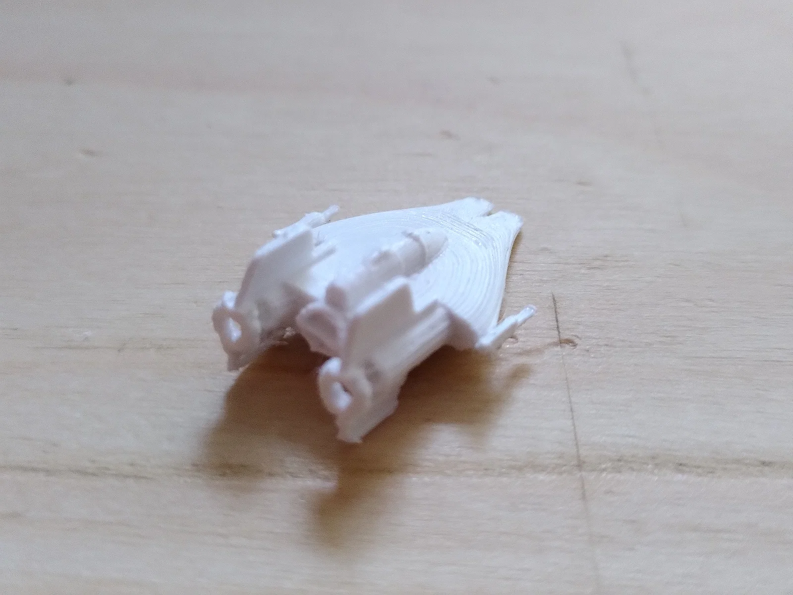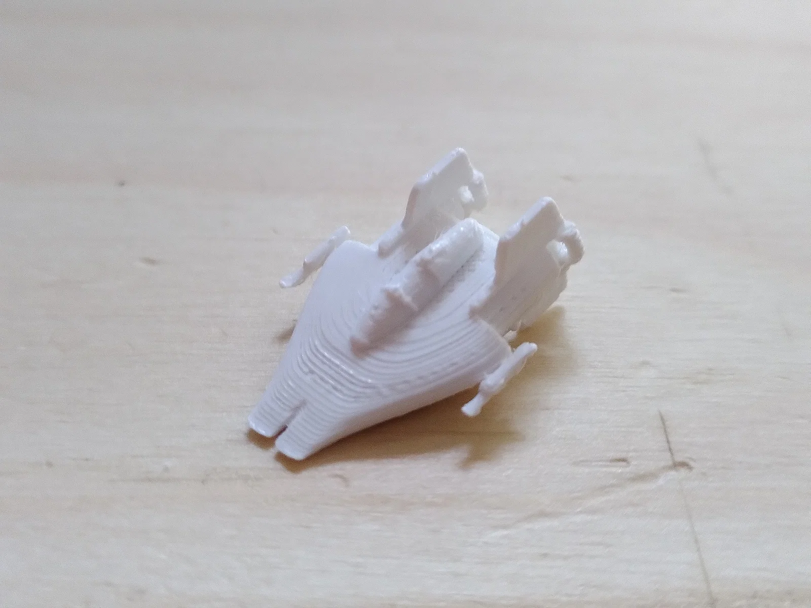 Replica tiêm kích đánh chặn RZ-1 A-Wing (Star Wars) tỉ lệ 1:270. Kích thước 25.6 × 17.8 × 9.7mm. In layer height 0.07mm, cần support trên buildplate và dùng file rz1_a_wing_blocker.stl để chặn support.