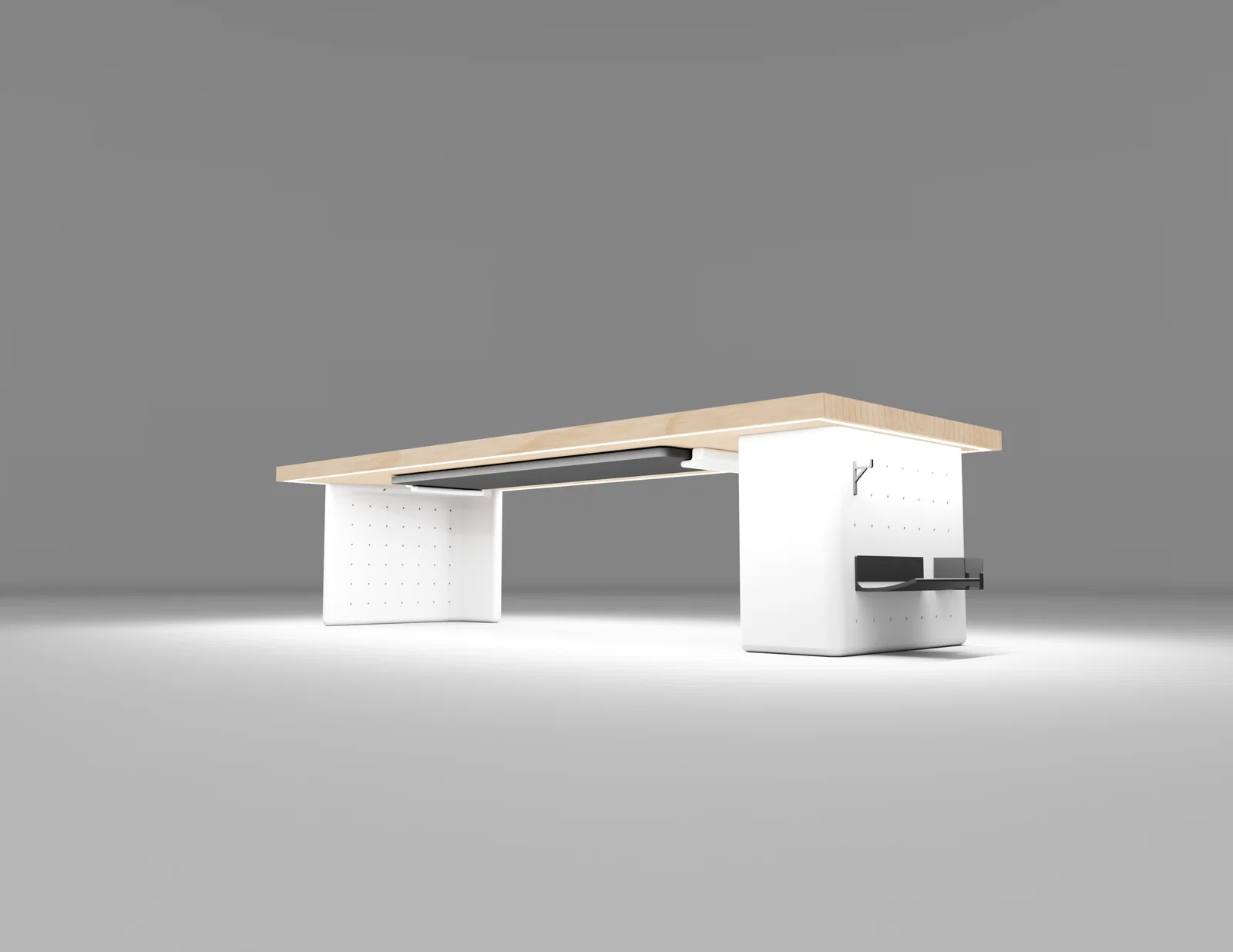 - Thiết kế pegboard dạng modular: Gắn nhiều loại phụ kiện lên các tấm có lỗ để tạo không gian làm việc “đo ni đóng giày”.