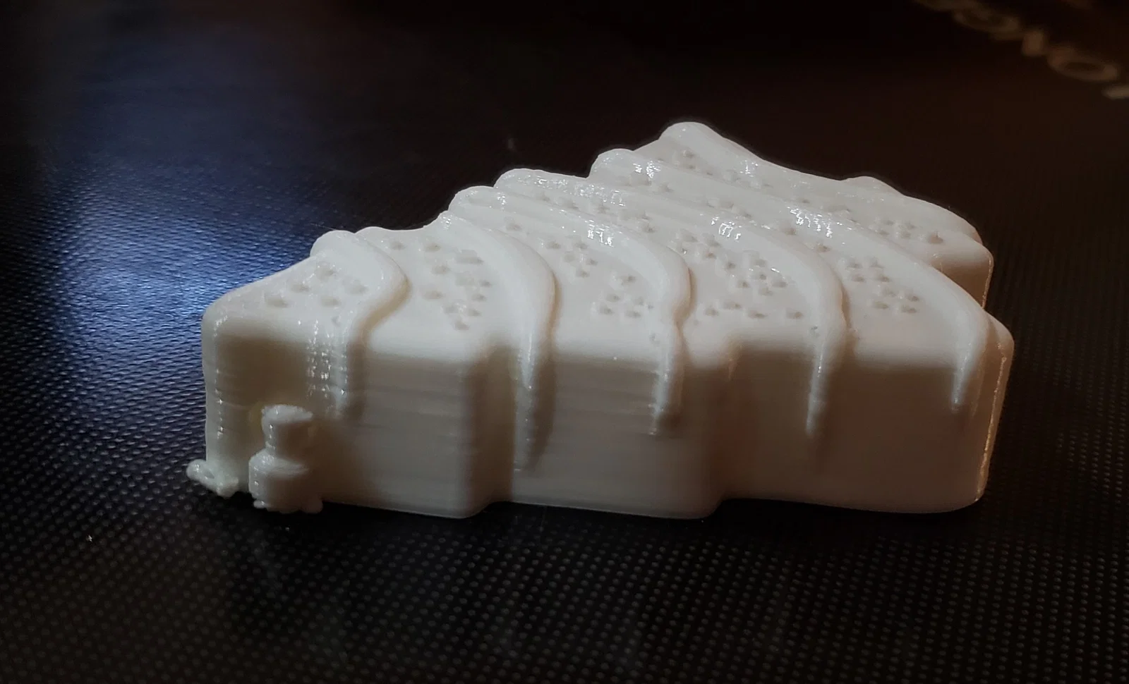 Mình in bằng White Creality PLA ở nhiệt độ nozzle 210 và bed 70. Độ phân giải .16mm. Infill 15%.