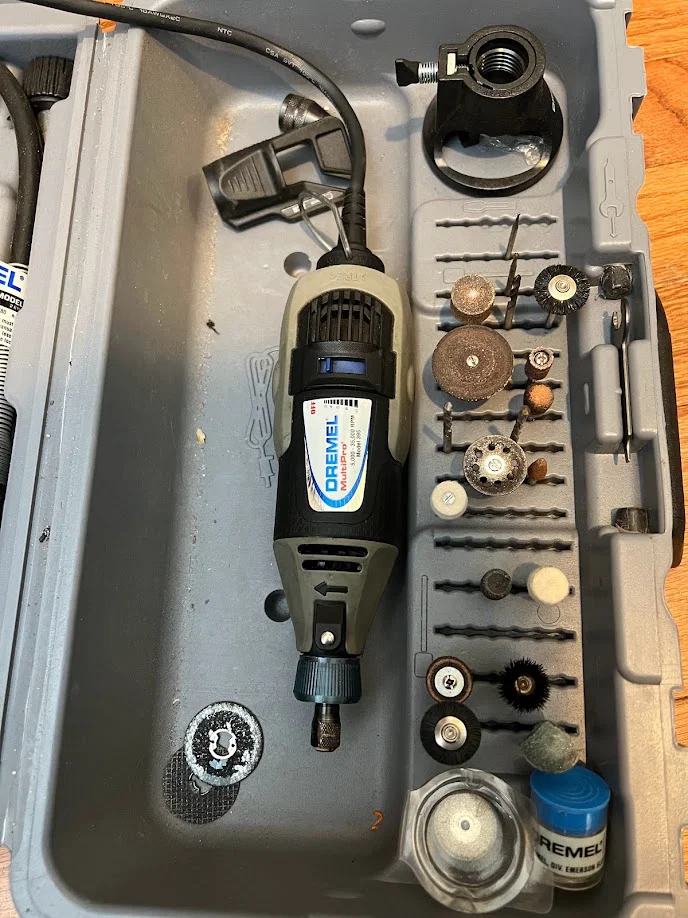 Nose cap của Dremel bị mất từ lâu nên mình làm bản in 3D thay thế. Model ghép từ 2 thiết kế có sẵn và thêm ring ở đáy để không bị hở khe. Sau 2 năm tìm lại được đồ zin nhưng vẫn dùng bản in.