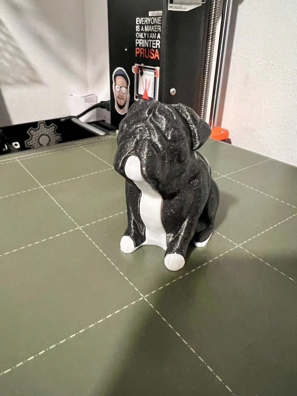 Bản remix “Buddy the Pug” của Josef Prusa, tách model thành 2 phần để in 2 màu dễ dàng với single extruder. In thân và mảng lông riêng, rồi ghép lại nhanh gọn để Buddy nổi bật và dễ thương hơn.