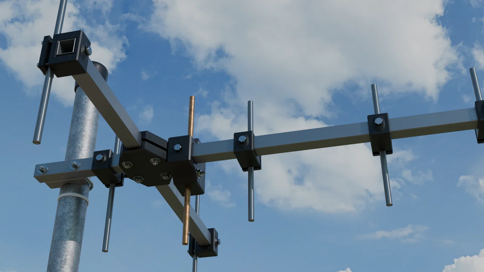 - Antenna này được thiết kế bằng MMANA-GAL, test với NanoVNA và các chi tiết in được dựng trong Blender.