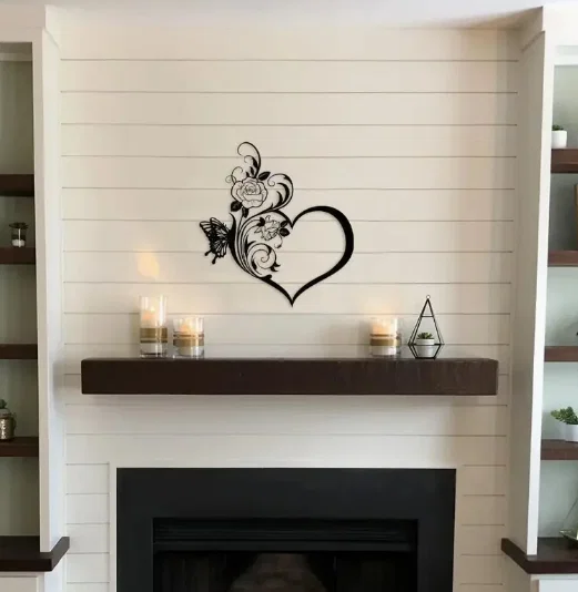 Mẫu trang trí treo tường hình trái tim hoa hồng và bướm đầy lãng mạn