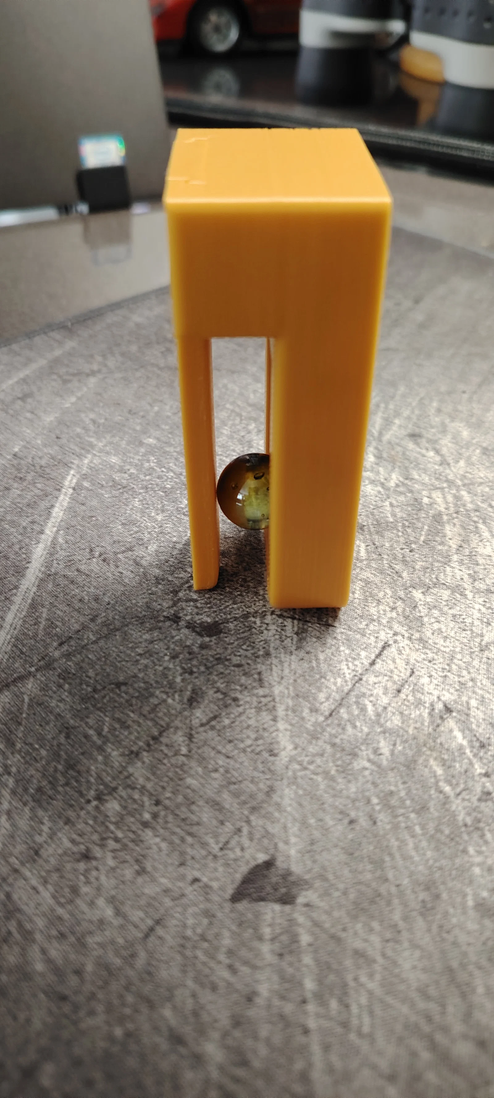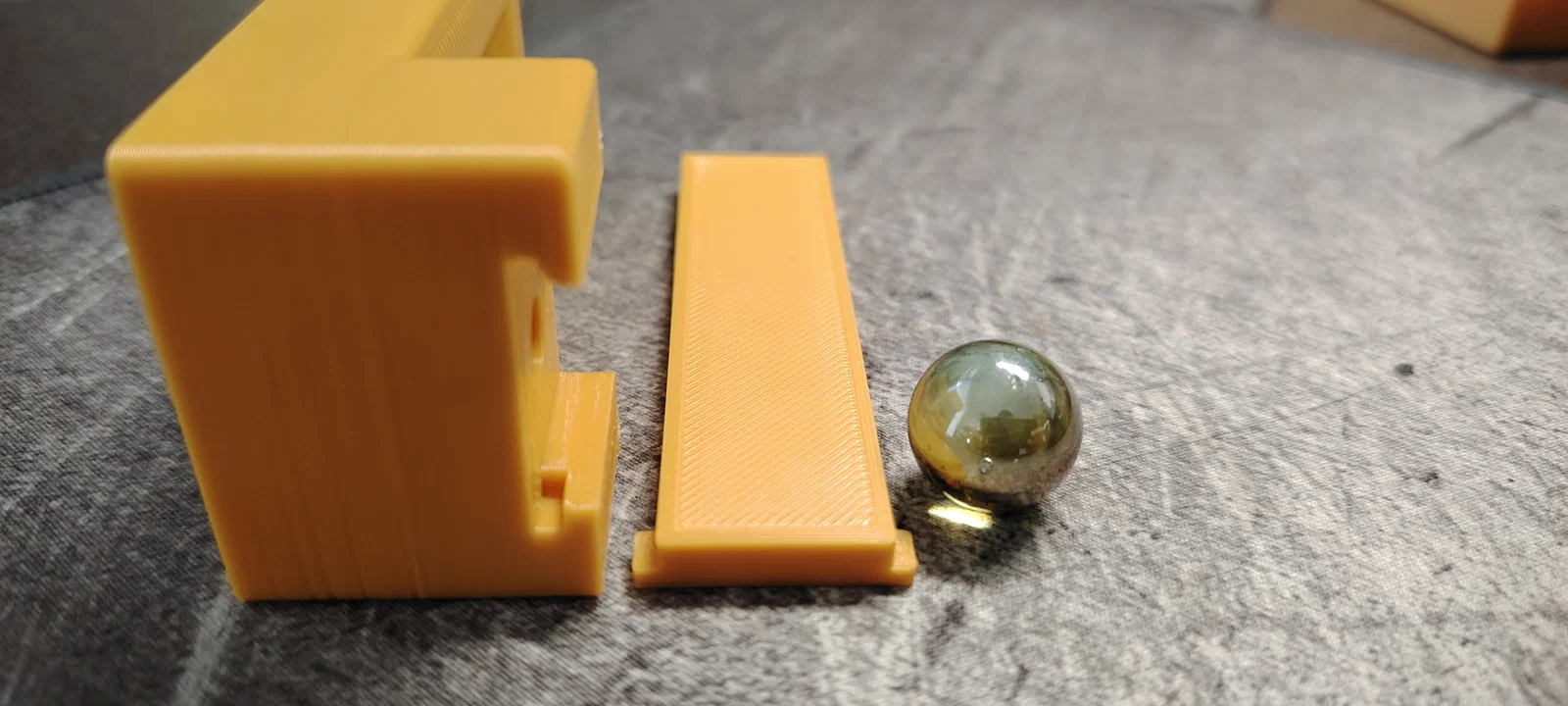 Các chi tiết là kiểu tight fit, khi đẩy phần trên vào hết sẽ có tiếng “click” khá đã. Viên bi kính (glass marble) mình tìm ở nhà đường kính gần 16mm, nên bạn nhớ kiểm tra kích thước viên bi bạn có.