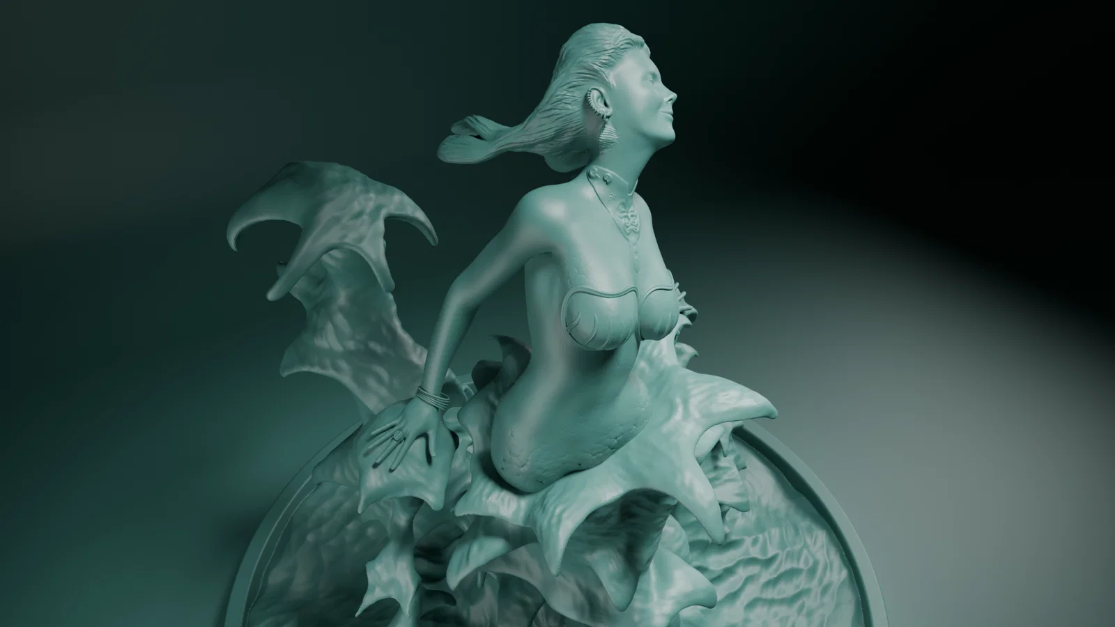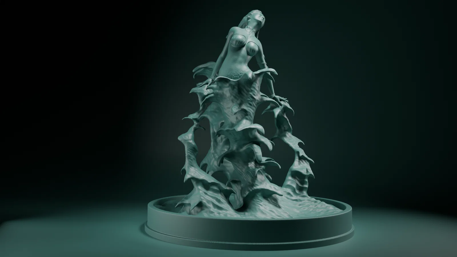The Siren là mô hình nàng siren trồi lên từ mặt nước, nhiều chi tiết mịn. Có 2 phiên bản: in nguyên khối (cần build plate lớn) hoặc in từng phần rồi dán. In được trên Mono 2 và cả FDM nếu chỉnh supports chuẩn.