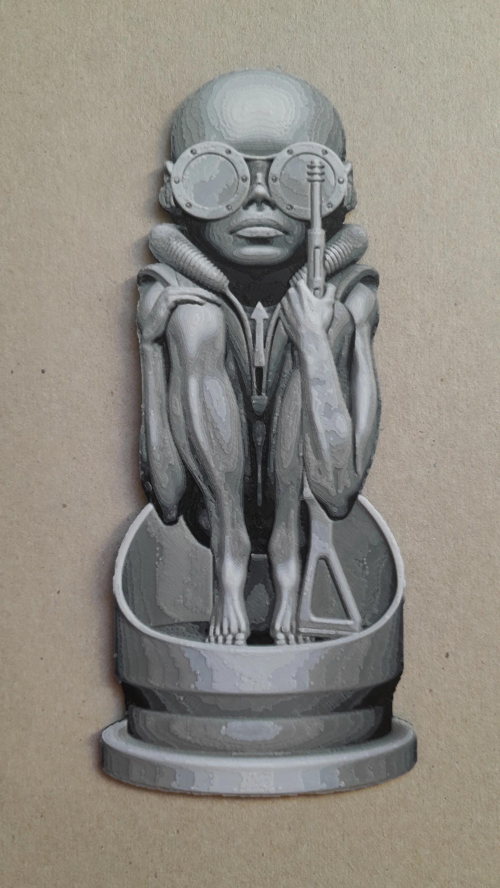 Mẫu bullet baby HR Giger Print lấy cảm hứng từ artwork “birth machine” của HR Giger. Thiết lập gợi ý: 100% infill, layer height 0.08mm (base 0.16mm), có hướng dẫn swap màu theo từng layer.