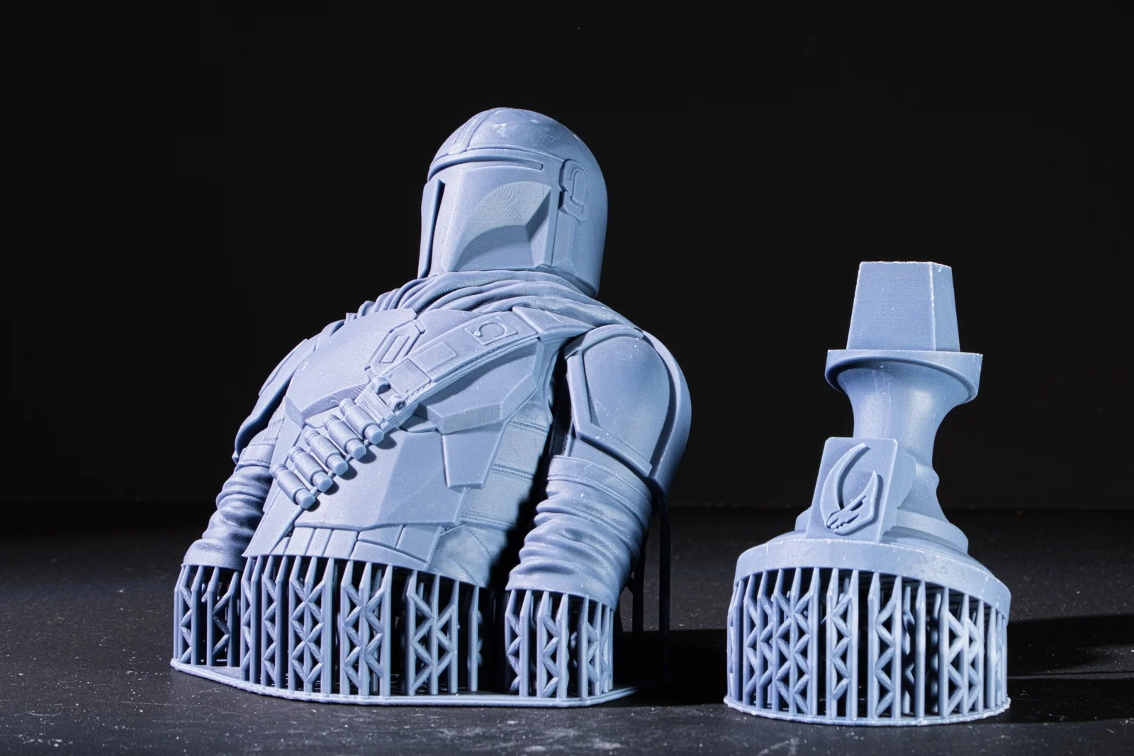Mẫu tượng bán thân The Mandalorian. Có sẵn file .stl và .lys Pre-Supported cho resin (Charro Zuck). Nếu in FDM, cần thêm supports ở phần vai và phía sau mũ như hình minh hoạ.