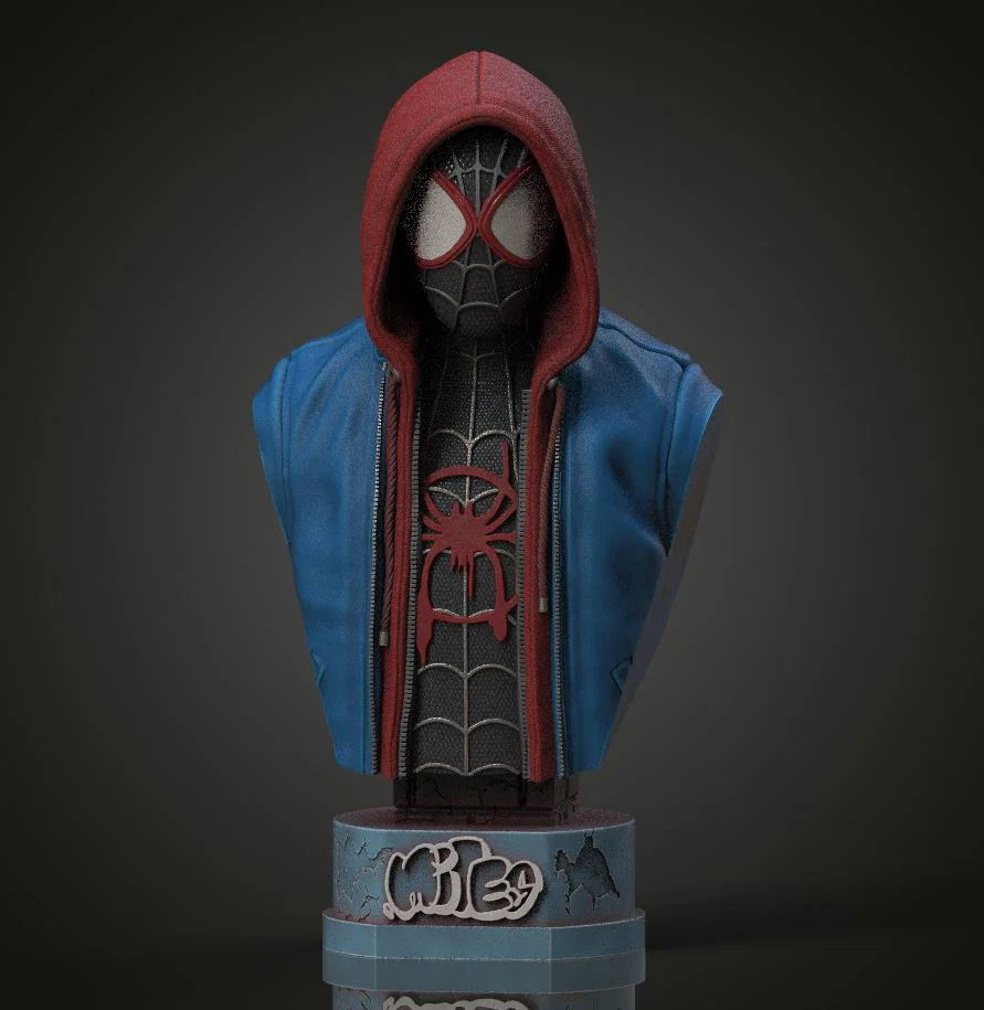 Mẫu tượng bán thân Miles Morales Spiderman (fanart) dành cho in 3D. Có kèm file .stl và .lys bản pre-supported cho resin, đã được chuẩn bị sẵn bởi dịch vụ hỗ trợ của Charro Zuck.