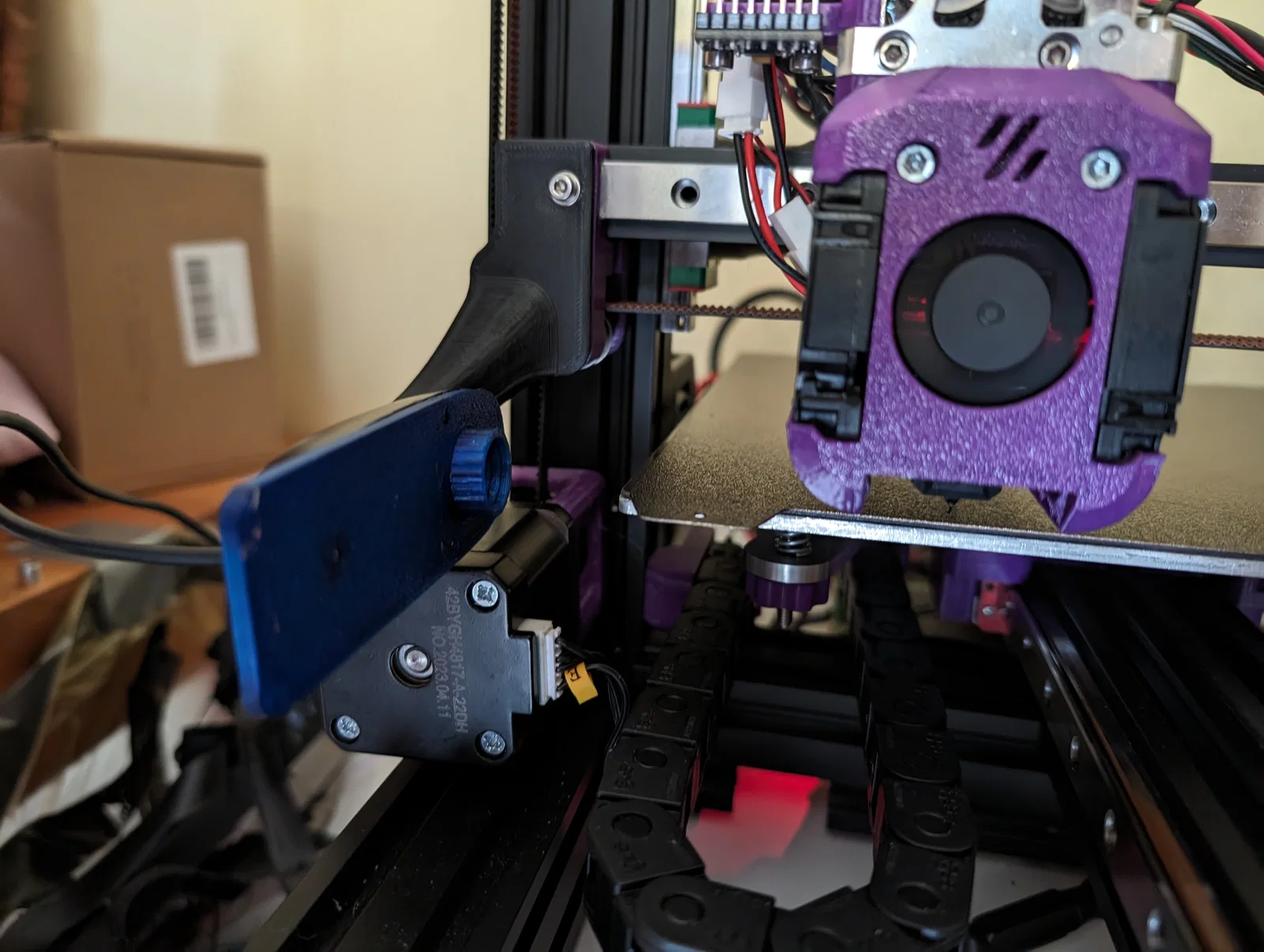 Con ốc đang dùng để kẹp cụm x axis idler block bên trái sẽ được tận dụng để làm điểm bắt ngàm. Ốc zin dài 16mm, và bạn sẽ cần một con dài hơn ít nhất 2mm.