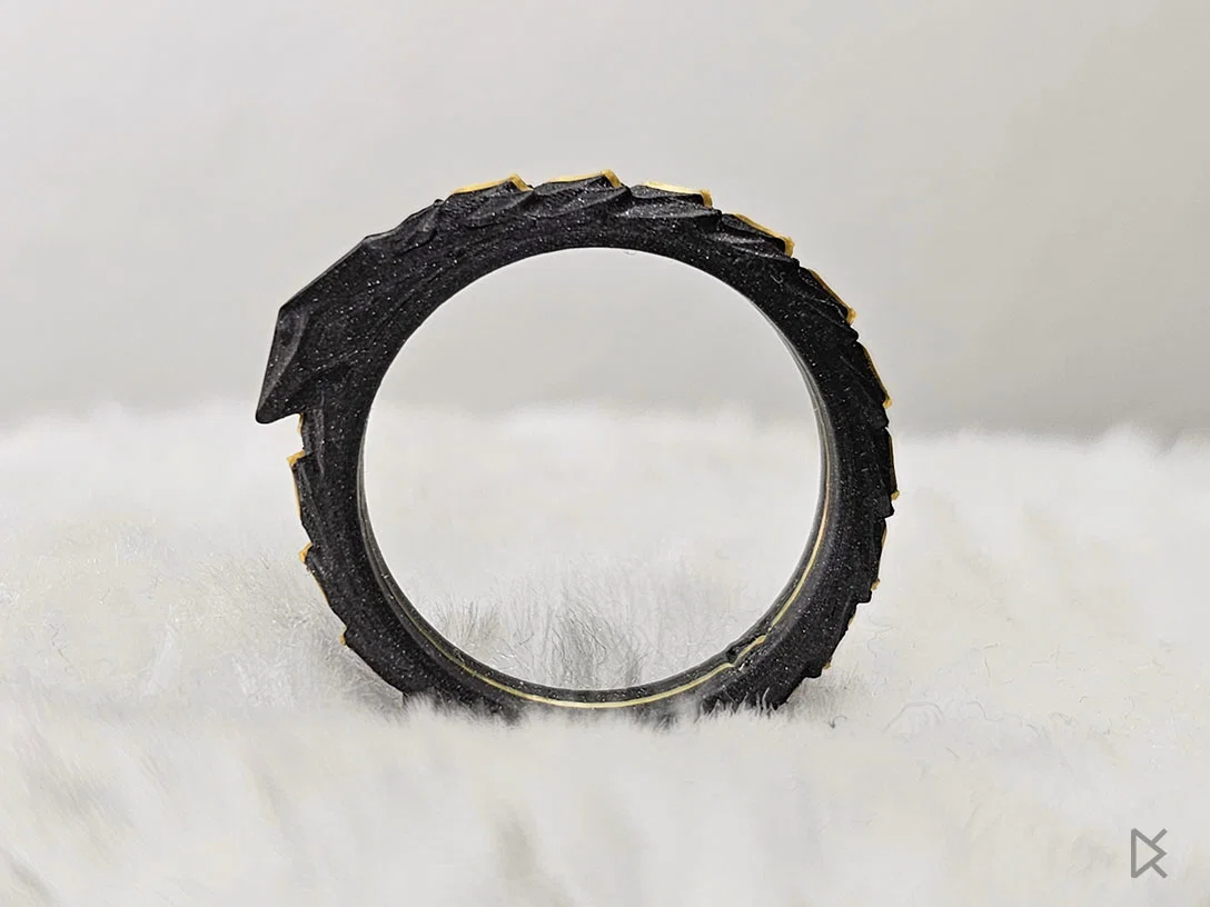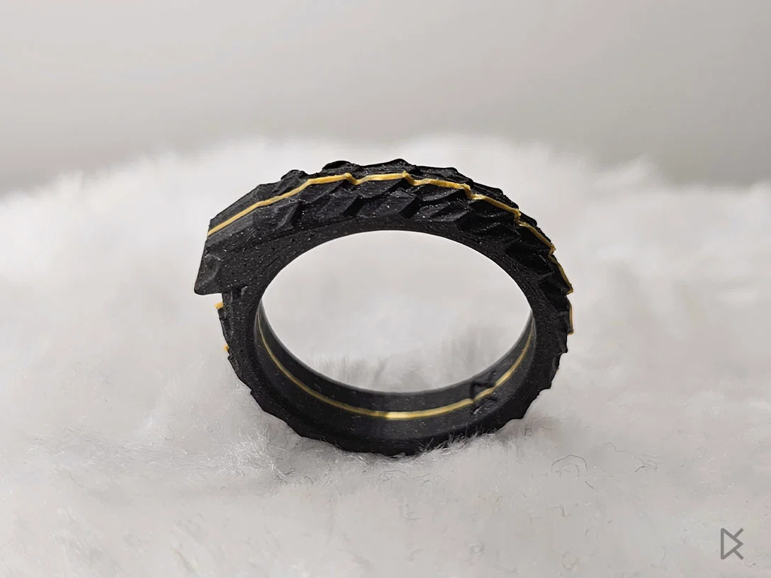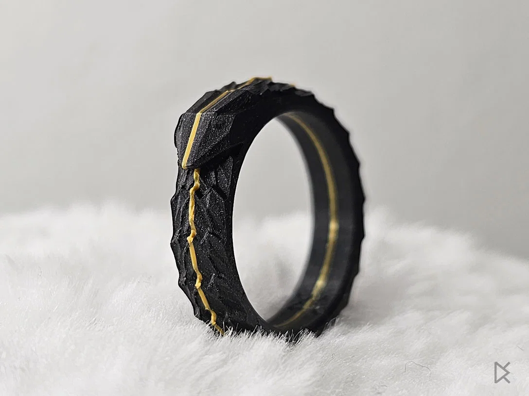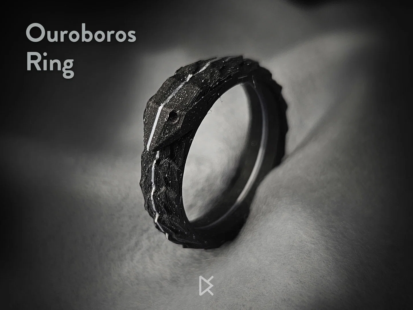 Nhẫn Ouroboros – biểu tượng con rắn tự ăn đuôi trong giả kim thuật, tượng trưng cho vòng tuần hoàn tái sinh. Thiết kế tối giản nhưng vân vảy cực chi tiết, có bản cho nozzle 0.2 và 0.4, dễ in với 2 lần đổi màu.