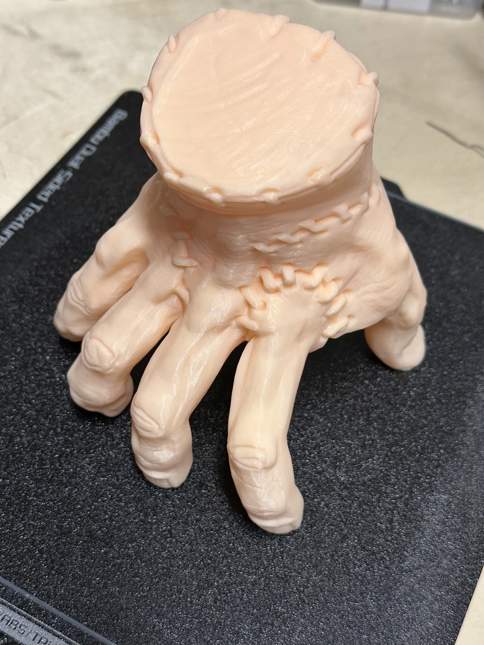 Mang nhân vật biểu tượng Thing từ bộ phim Wednesday về bàn làm việc của bạn với mô hình in 3D đầy chi tiết này. Thiết kế được tối ưu hóa đặc biệt để bạn có thể in ấn dễ dàng mà không cần dùng đến bất kỳ cấu trúc hỗ trợ (support) nào, giúp tiết kiệm thời gian và đảm bảo bề mặt mô hình luôn sắc nét, chân thực. Với các vết khâu đặc trưng và dáng vẻ ma mị, đây chắc chắn là vật phẩm trang trí không thể thiếu cho những người hâm mộ loạt phim đình đám này. Hãy sử dụng nhựa PLA màu da để đạt được hiệu ứng thẩm mỹ tốt nhất, đồng thời áp dụng layer height nhỏ để làm nổi bật các chi tiết nhỏ trên mô hình. Đây là dự án thú vị và đơn giản cho bất kỳ ai yêu thích in 3D và muốn có một món đồ độc đáo cho riêng mình.