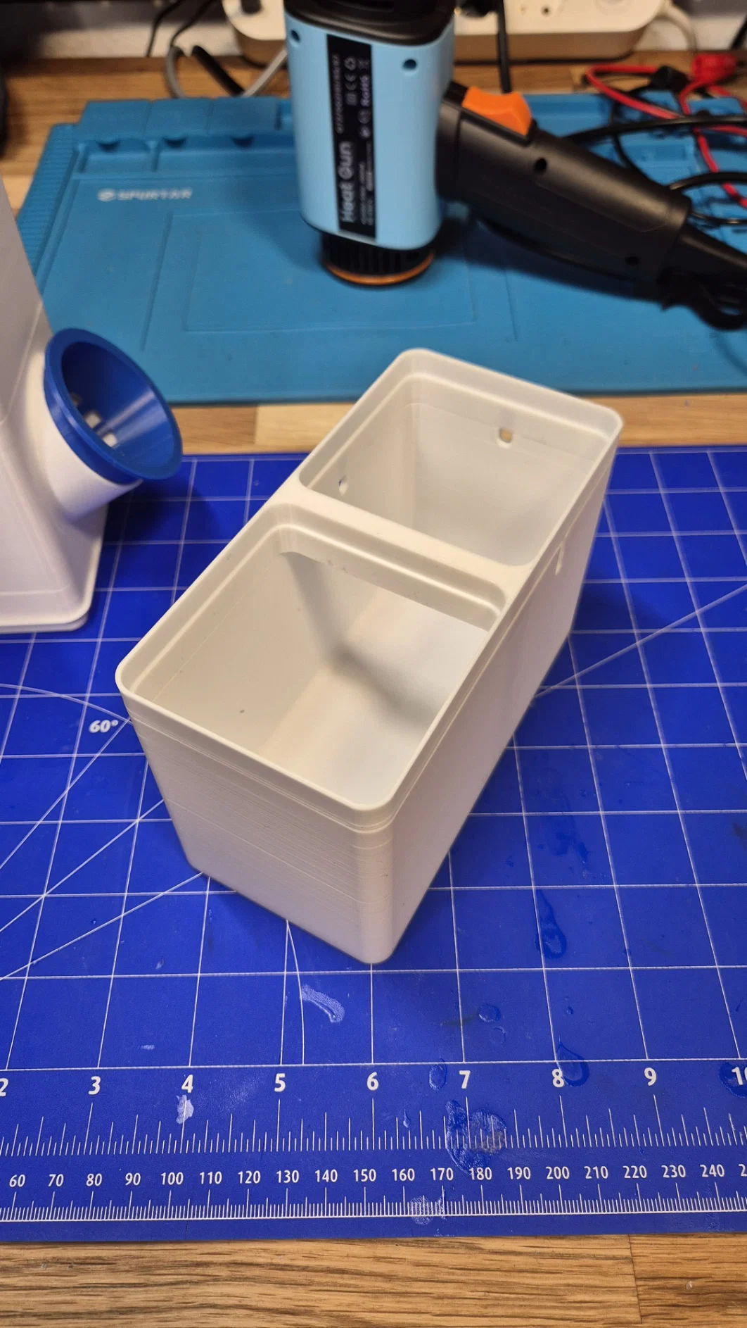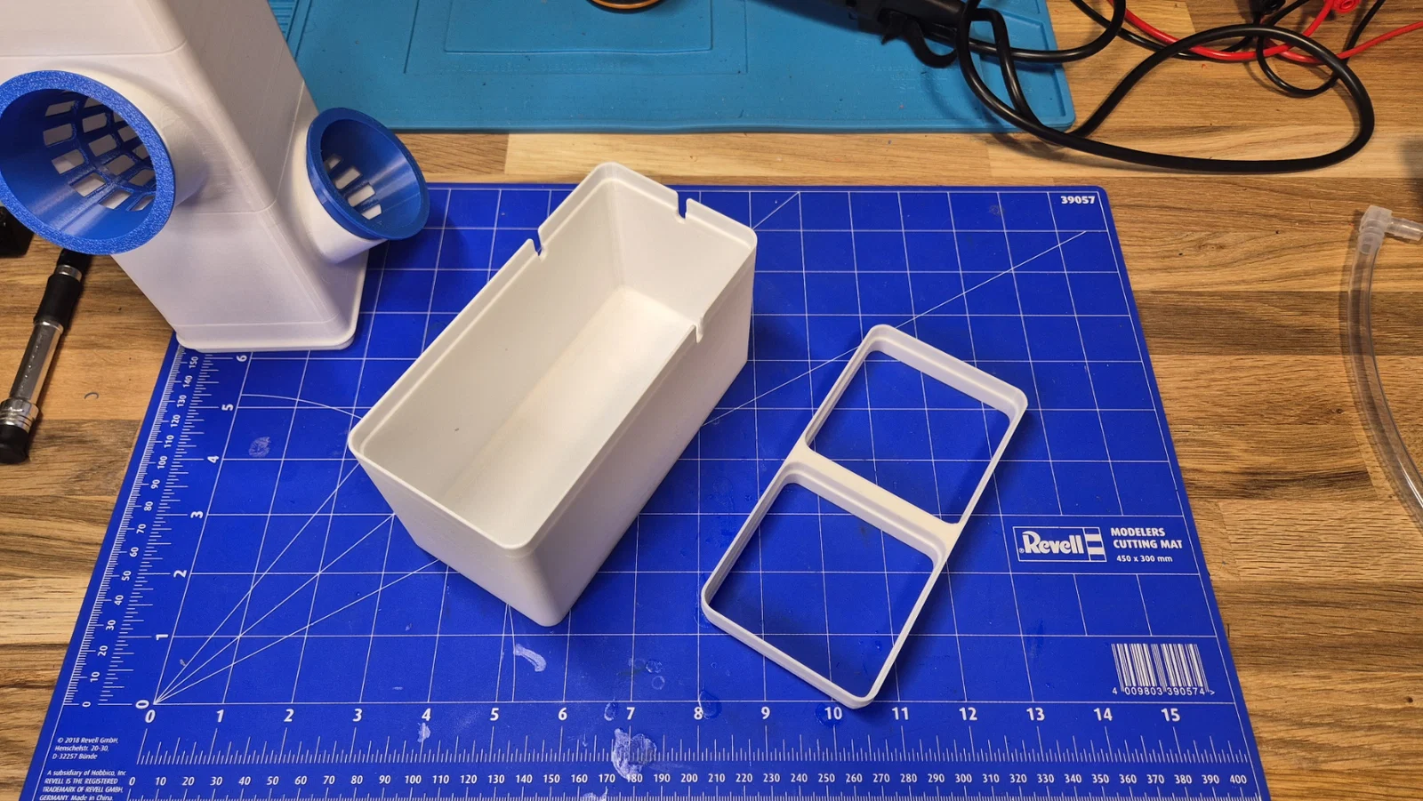Mình remix lại bản gốc vì phần filter-spacer bị thiếu lỗ, và hộp chứa nước + bơm thì quá nhỏ, lại không có cửa mở để châm nước và đo các mức pH và EC.