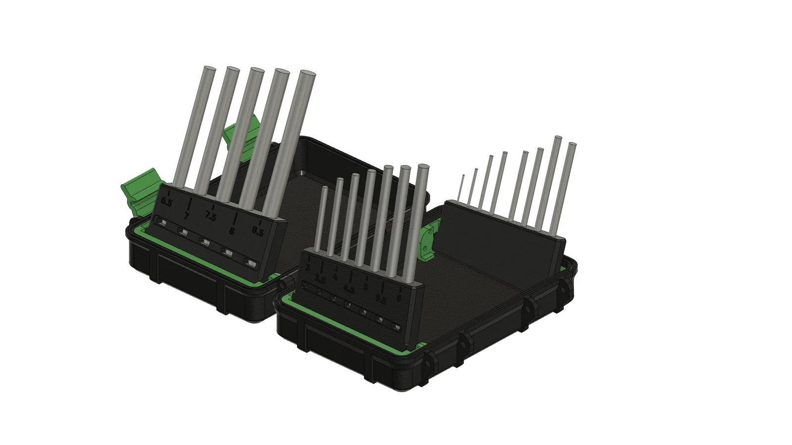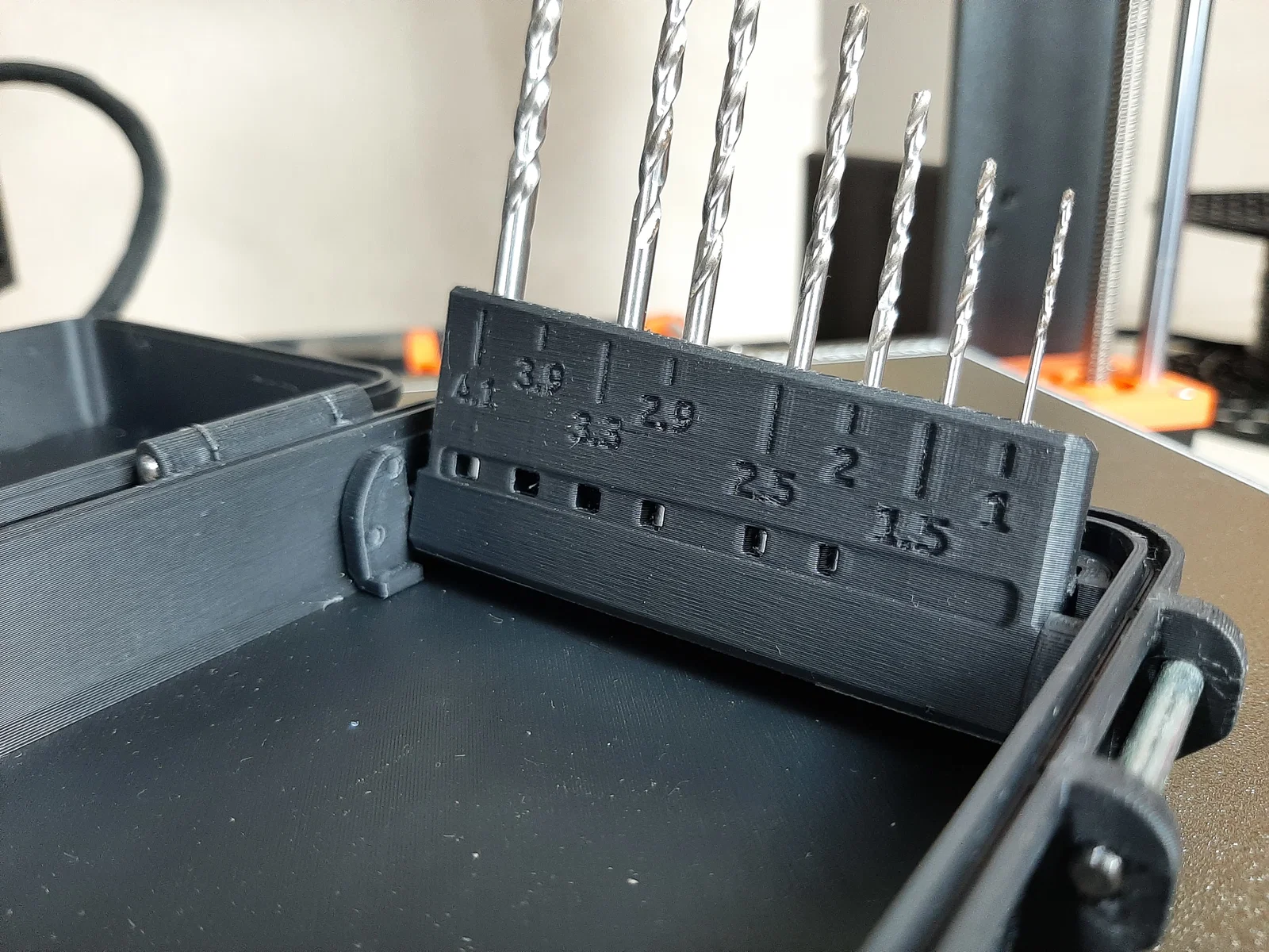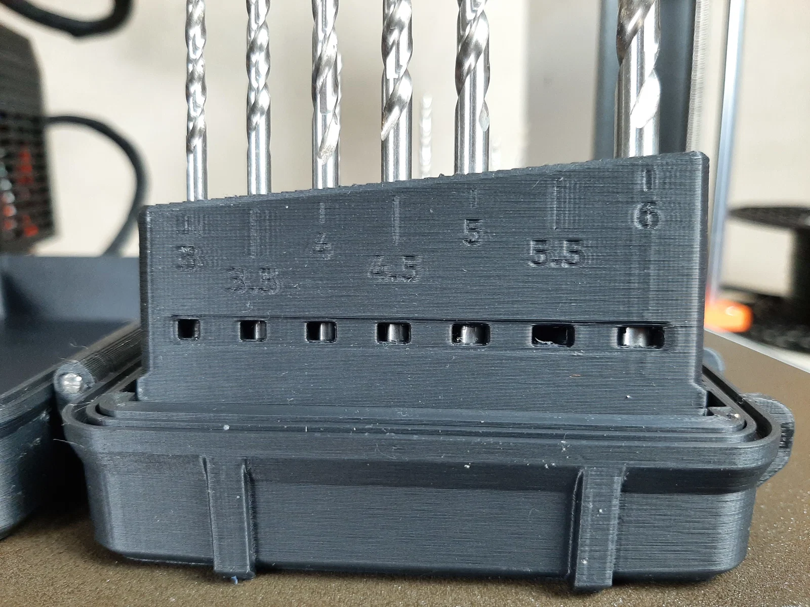 Mẫu Drill Organizer Box giúp sắp xếp bộ mũi khoan gọn gàng và dễ tìm. Có thể xếp theo kích thước tăng dần hoặc tùy biến nhóm mũi hay dùng. Nhớ calibrate XY compensation trước khi in để đảm bảo các chi tiết khớp chuẩn.