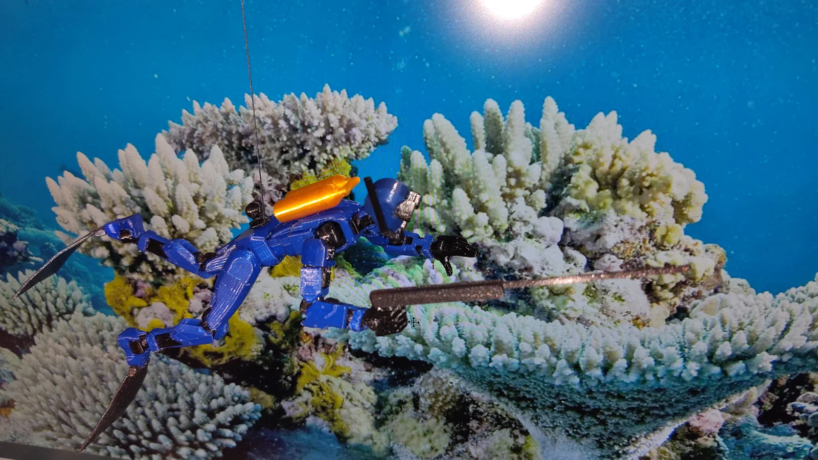 Bộ đồ lặn cho Dummy13 gồm có bình khí, chân vịt, phần đầu kèm ống thở (snorkel) và kính lặn, cùng một cây lao. Các chi tiết được in bằng PLA, layer height 0.15mm và nozzle 0.4mm. Có kèm file để in phần đầu bằng MMU.