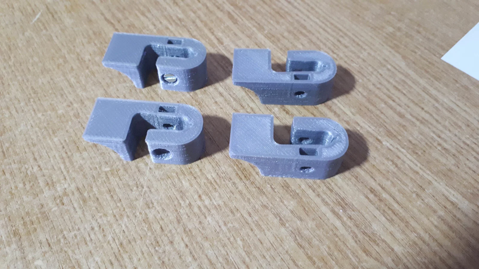 Bộ clip giúp gắn thêm kệ kính cho tủ trưng bày Ikea Detolf khi bạn muốn thêm tầng để trưng đồ nhỏ. In PLA, không cần support/raft; khuyến nghị infill 60%. Dùng vít + ê-cu M3 (DIN/ISO).