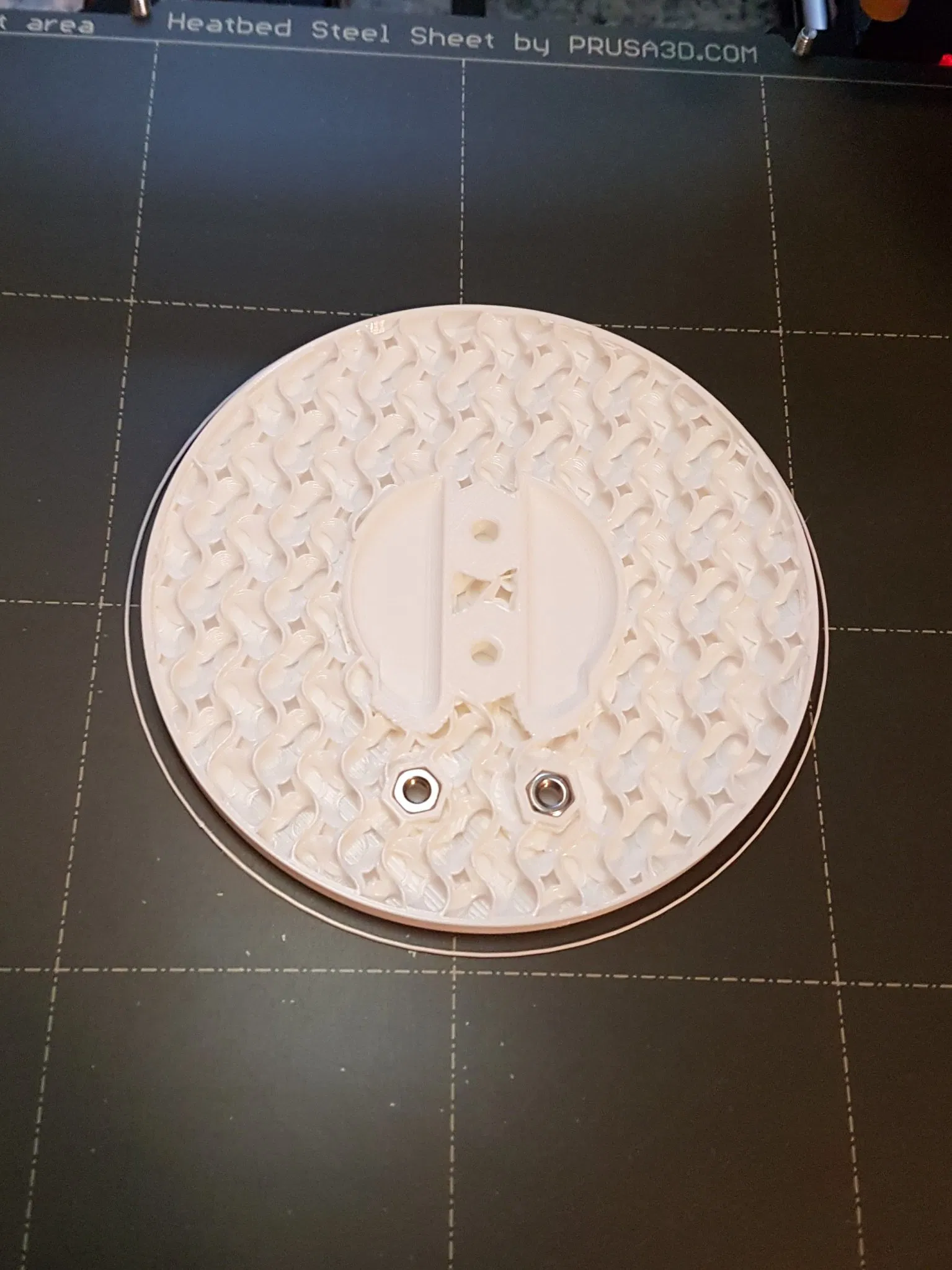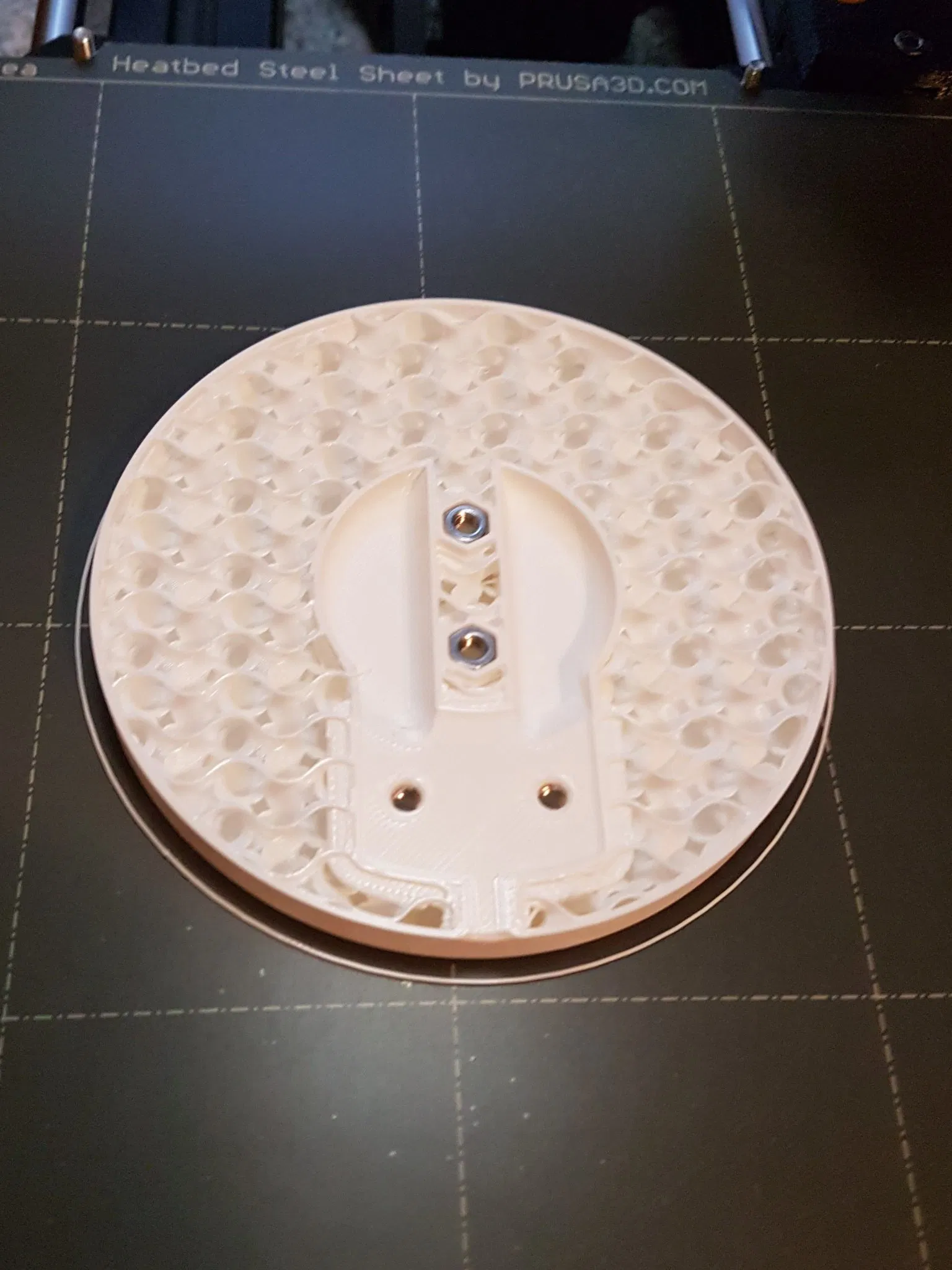 Việc in phải tạm dừng hai lần để chèn đai ốc M3 (kiểm tra ảnh). Lần tạm dừng đầu tiên sau 5mm, lần tạm dừng thứ hai sau 7,6mm.