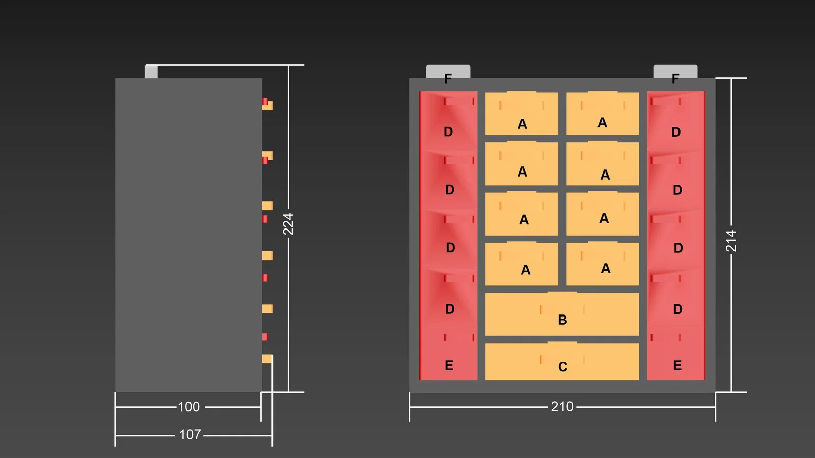 Để có thể phân loại tất cả ốc vít, đai ốc và long đền cho gọn gàng, mình đã thiết kế hộp phân loại (assortment box) này, thực tế và rất chắc chắn. Phần giữa gồm 8 hộp ngang nhỏ và 2 hộp ngang lớn. Các hộp bên hông có thể xoay bung ra ngoài. Trên cùng có 2 hộp dọc có nắp và được chia thành 4 ngăn. Những hộp này dùng để cất, ví dụ, tất cả các chi tiết ốc vít mà bạn cần cho một công việc cụ thể. Khi không dùng các hộp này, bạn có thể đóng lại bằng một nắp đậy. Nắp này cũng được dùng để chồng nhiều hộp phân loại lên trên nhau. Khung còn có 4 lỗ để bạn có thể gắn hộp phân loại lên tường. In toàn bộ hộp lưu trữ này sẽ mất khá lâu và tốn nhiều filament, nhưng đổi lại bạn sẽ có một hộp lưu trữ nhỏ gọn, đa năng và rất bền để cất các món đồ nhỏ.