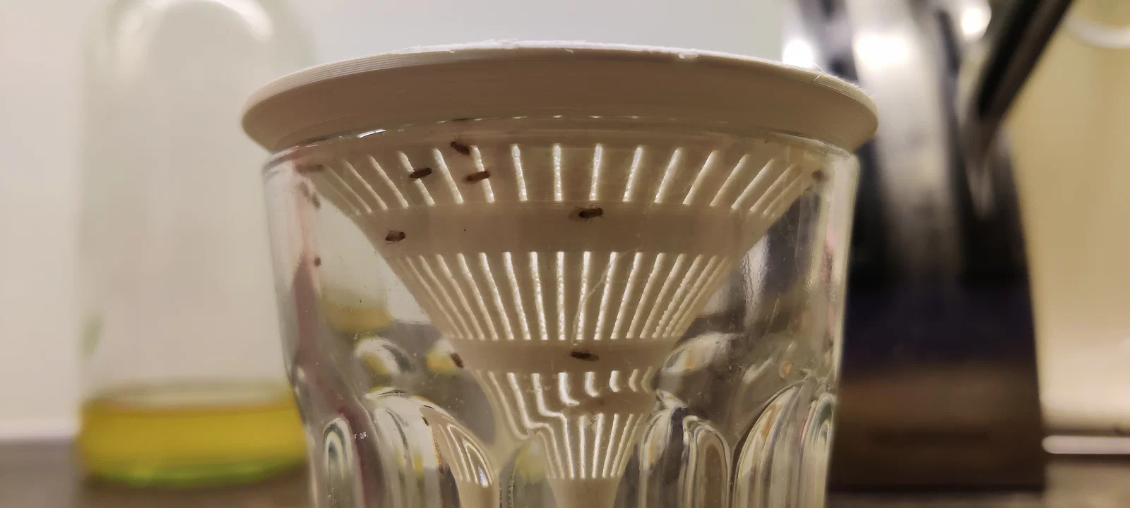 Bạn đang đau đầu vì lũ ruồi giấm cứ bay vo ve quanh khu vực bếp, đặc biệt là gần giỏ trái cây chín? Đừng lo, mẫu thiết kế 3D này chính là giải pháp cực kỳ đơn giản và hiệu quả dành cho bạn. Với hình dáng giống như một chiếc phễu ngược được in 3D tinh tế, thiết bị này được thiết kế để đặt vừa vặn lên miệng các loại ly hoặc hũ thủy tinh thông dụng trong nhà. Chỉ cần bỏ một ít mồi nhử bên dưới, lũ ruồi sẽ bị dẫn dụ vào bên trong mà khó lòng tìm được đường thoát ra ngoài.