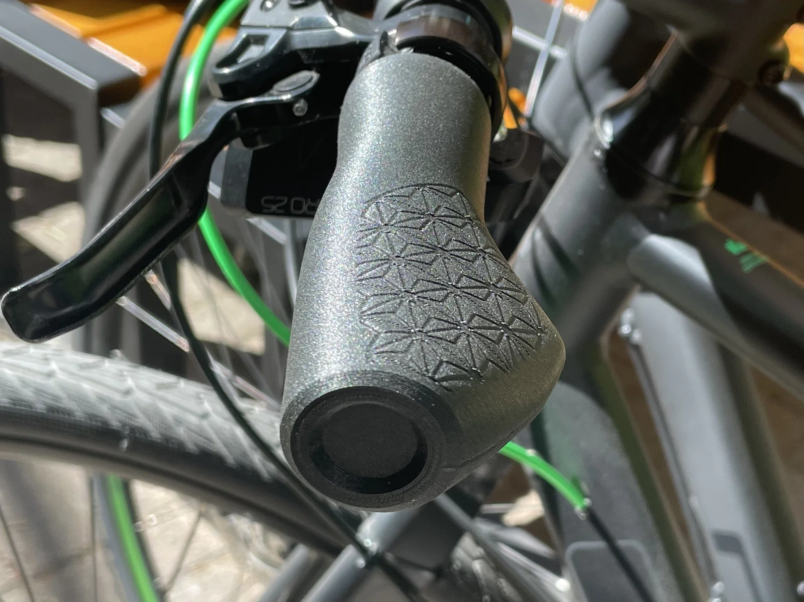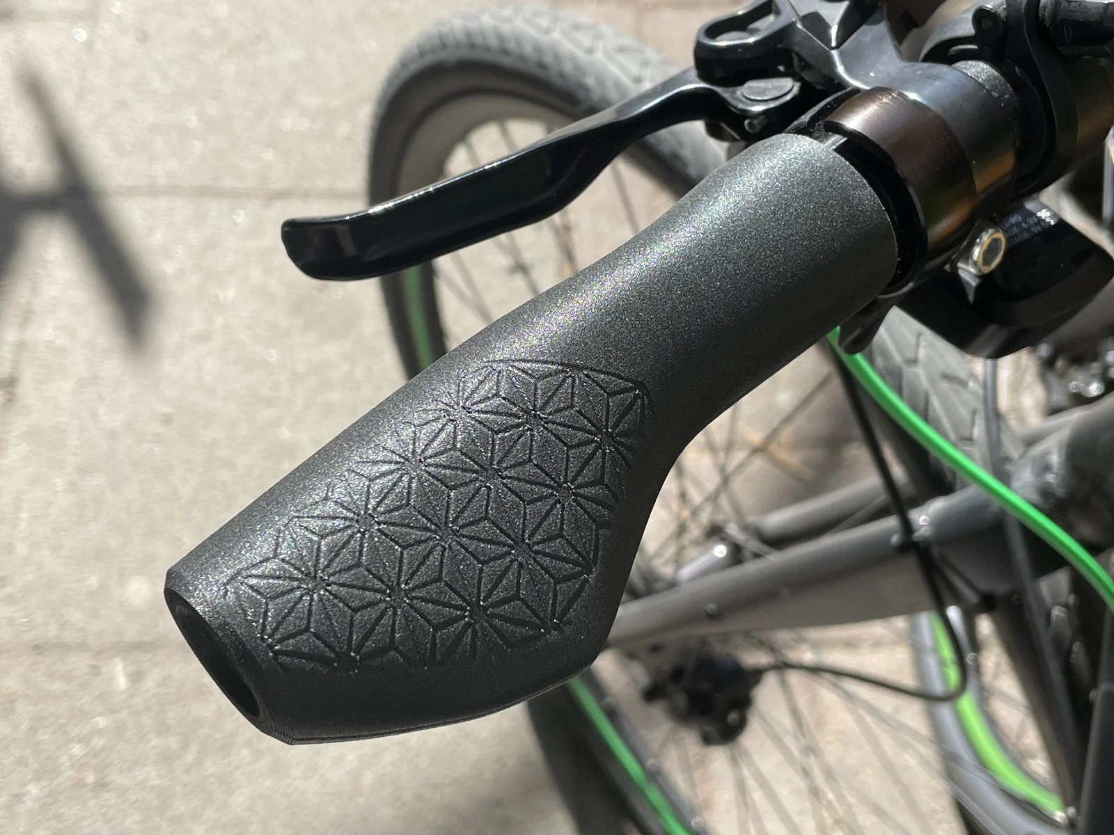 Cặp tay nắm xe đạp họa tiết Nhật “Asa-no-ha/Asanoha” (lá gai dầu), còn gọi là Nezuko pattern trong Demon Slayer. Thiết kế ergonomic, fit ghi-đông 22.2mm; khuyến nghị in TPU/TPE, 0.2mm layer.